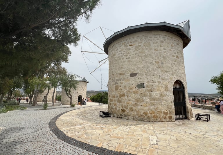 Alaçatı también cuenta con molinos de viento ubicados en una pequeña colina cercana al centro, que ofrecen una de las mejores panorámicas del pueblo. Algunas sirven de bar donde poder tomaros un té. Además, el pueblo también cuenta con un mercado semanal donde podréis encontrar productos frescos, especias, textiles y artesanías locales. Aquí sí que experimentaréis de una forma más real la vida local. Para llegar desde Çeşme os recomendamos que cojáis un minibús (dolmuş) si no disponéis de coche: está a unos 10-15 kilómetros por lo que no tardaréis demasiado y los hay todo el rato.
