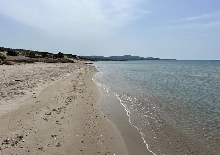 La playa de Altınkum, por su parte, también está ubicada cerca de Çeşme aunque un poco más al sur. Es una de las más populares de la región y, sin duda, nuestra favorita. Su arena dorada y sus aguas cristalinas le dan el nombre de "Altınkum," que significa "arena dorada" en turco. Es una playa ideal tanto para familias como para amantes de los deportes acuáticos, ya que sus aguas suelen ser tranquilas y muy seguras para nadar. El acceso desde Çeşme es sencillo, pues hay autobuses que os llevarán hasta allí si no disponéis de coche propio. También podéis acceder en taxi: si lo compartís entre varios es una muy buena opción, y bastante económica. Altınkum es una de las playas más largas y gracias a sus vistas y el entorno que la rodea, es una visita obligada si viajáis a esta parte de la Riviera Turca. Os dejamos por aquí nuestro ranking con las mejores playas de la Riviera Turca por si le queréis echar un vistazo.