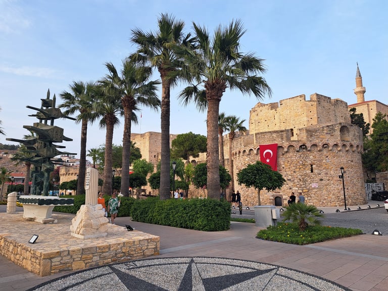 En el pueblo, se puede visitar el bonito Castillo de Çeşme, construido en el siglo XVI por los otomanos, con vistas panorámicas del puerto y la ciudad. También os recomendamos recorrer el puerto y el paseo marítimo y cenar en alguno de los restaurantes de pescado del centro, aunque los precios en Turquía en mayo de 2024 estaban por las nubes. Está repleto de restaurantes, tiendas y cafeterías bastante elegantes y bien puestas. Un lugar perfecto para pasear y disfrutar de la gastronomía local. Para terminar, mención especial a nuestro alojamiento en el pueblo, el Yalcin Hotel, en el que nos sentimos como en casa y donde el dueño y su mujer nos trataron de la mejor manera posible y nos recibieron con los brazos abiertos. Está céntrico y su relación calidad-precio es inmejorable; ¡os lo recomendamos muchísimo!