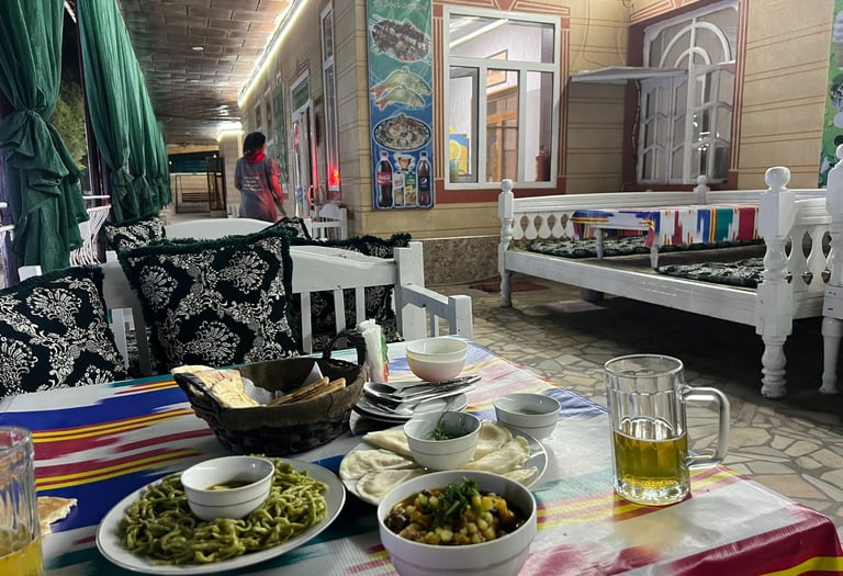 La oferta gastronómica de Khiva es muy diferente a la del resto del país y, en cierto modo, puede parecer más reducida o sosa; sin embargo, es el único lugar donde se pueden probar algunos platos típicos de la región como Tuhum-barak o shuvit Oshi. Merece la pena que leáis nuestro artículo sobre la gastronomía uzbeca.