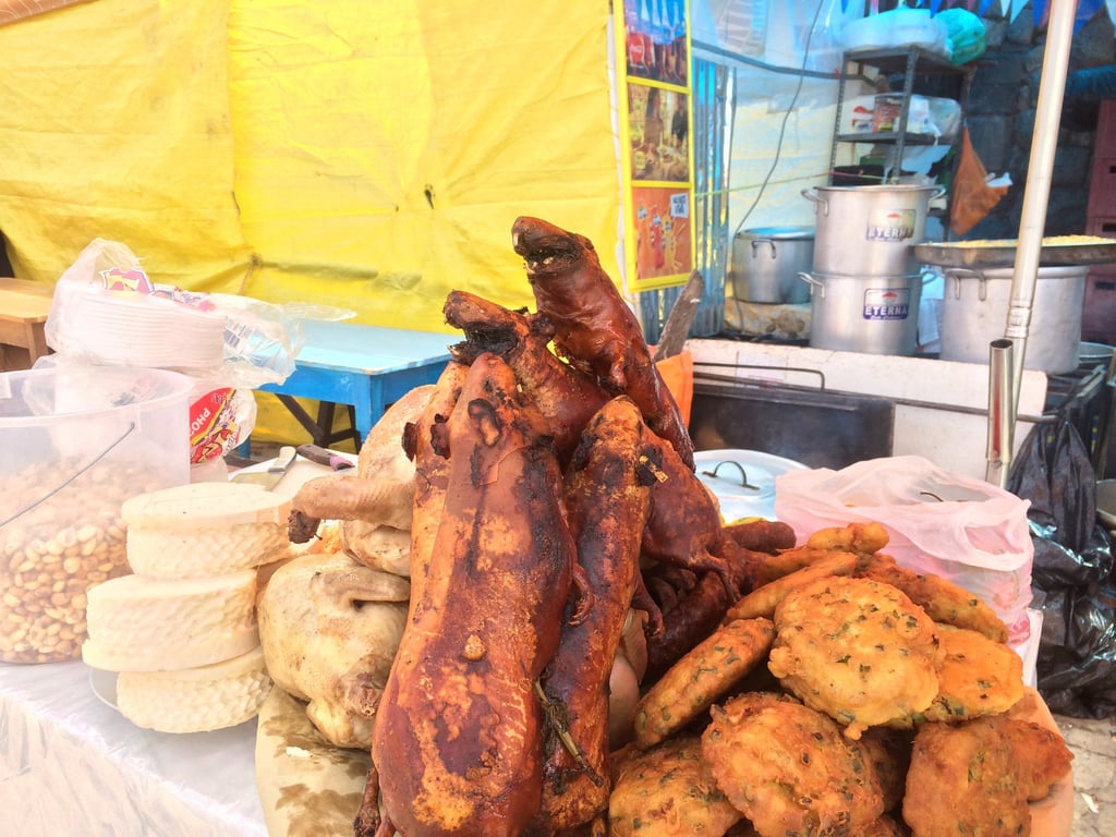 San Pedro es una experiencia imprescindible para conocer la cultura local. Este mercado tradicional está lleno de productos frescos, textiles, artesanías y comida típica. Aquí podréis probar delicias poco conocidas como el choclo con queso, los zumos o jugos naturales o el famoso cuy que hemos mencionado anteriormente. Es un buen lugar para comprar recuerdos auténticos y ver la vida cusqueña en su máxima expresión. También os recomendamos sentaros en uno de los puesto de comida junto con locales y pedir alguno de los menús del día que suelen incluir una reconfortante sopa cusqueña, perfecta para aclimatarse a la altura y el frío.