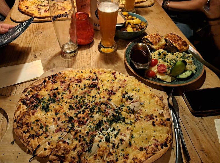 Es otra cervecería muy popular en el casco antiguo de Friburgo, ubicada junto a la histórica Martinstor. Conocida por sus cervezas artesanales elaboradas allí mismo y tener un ambiente muy acogedor, Martinsbräu nos encanta ya que ofrece una experiencia alemana auténtica, combinando la deliciosa cerveza local con platos de salchichas, Pretzels y Flammkuchen. El ambiente es rústico y vibrante, y acoge eventos ocasionales con música en vivo que la convierten en un punto de encuentro ideal para locales y turistas.