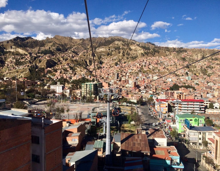 Moverse en la ciudad: además del teleférico, podéis moveros en taxi o autobús, aunque el tráfico suele ser lento en hora punta. El teleférico es una opción rápida, barata y la mejor manera de disfrutar de la ciudad de forma panorámica y el ticket no suele costar más de 3 BOB por trayecto, unos 40 céntimos.