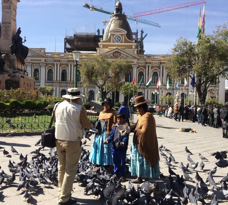 La Plaza Murillo es el corazón histórico de La Paz. Aquí veréis el Palacio Presidencial, la Catedral Metropolitana y otros edificios históricos. Alrededor de la plaza, el bullicio de vendedores ambulantes, artistas y transeúntes os dará una primera impresión del ritmo paceño. Pasead por las calles empedradas del casco antiguo, como la calle Jaén, famosa por su arquitectura colonial y sus pequeños museos y galerías de arte. Esta es la mejor toma de contacto y un punto de partida típico de toda visita a la capital.