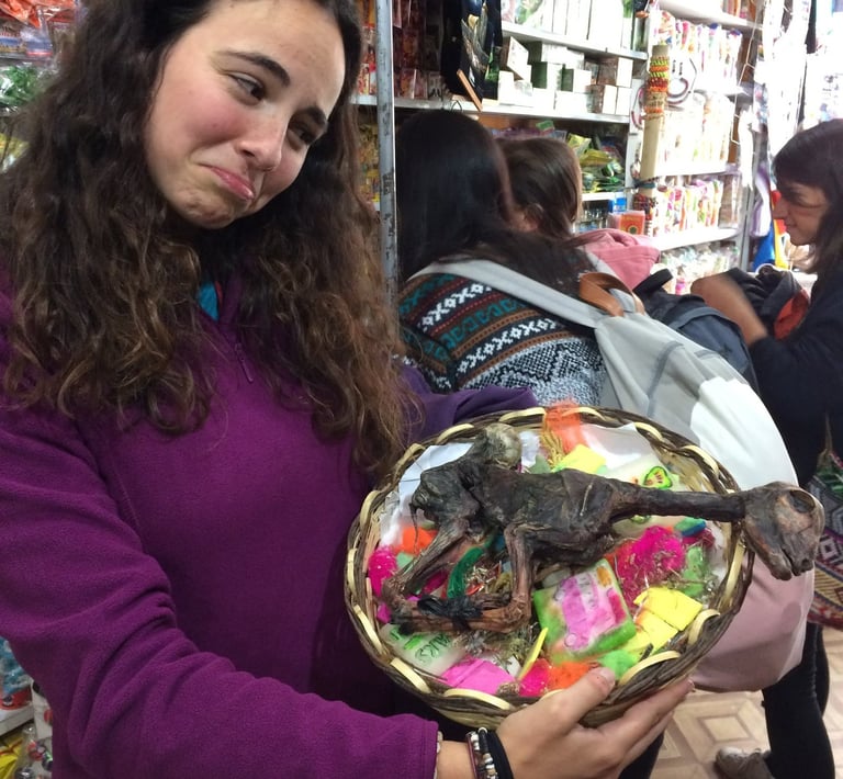 Uno de los sitios más peculiares y auténticos de La Paz es el Mercado de las Brujas. Aquí podréis ver objetos místicos utilizados en rituales andinos, como amuletos, fetos de llamas y hierbas medicinales. Lo que leéis. Los vendedores suelen compartir sus conocimientos sobre el uso de cada objeto y las tradiciones andinas, lo que convierte la visita en una experiencia cultural única. Aprovechad para comprar algún recuerdo inolvidable, ya que dicen que estos amuletos atraen a la buena suerte.