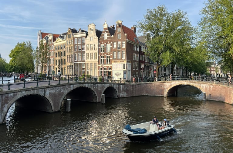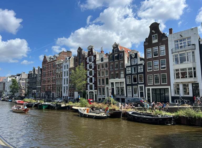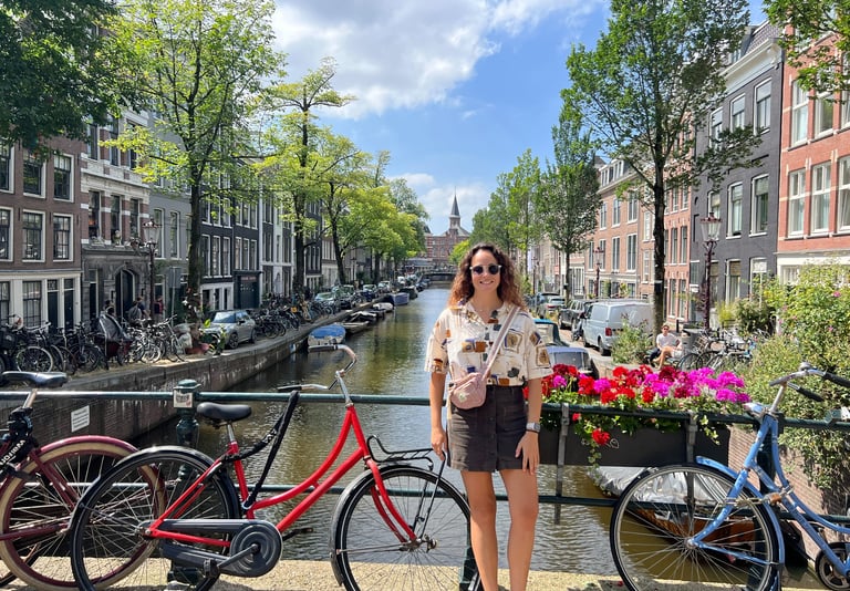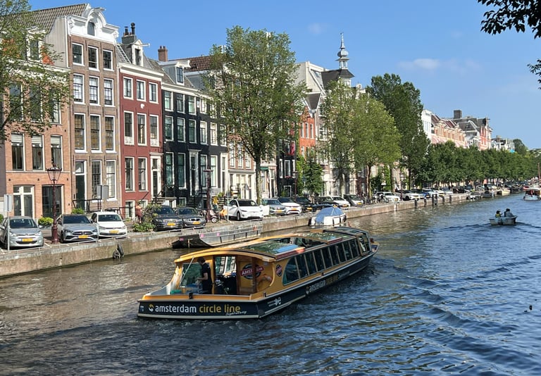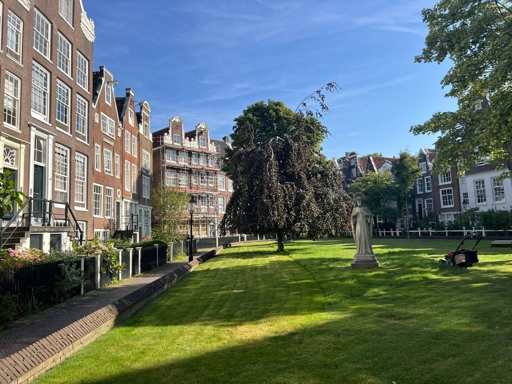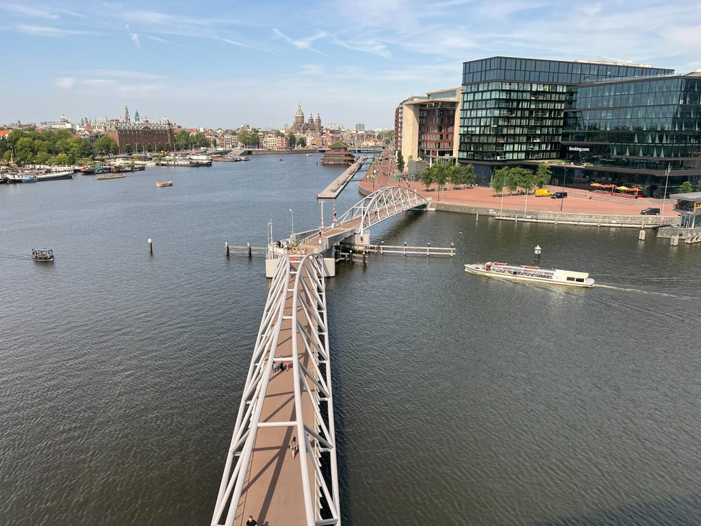 Pasamos gran parte de la mañana paseando por Ámsterdam y visitando lugares que no habíamos explorado el día anterior. Salimos temprano del Rembrandt Square Hotel hacia el casco histórico, concretamente a Begijnhof, un elegante conjunto casas fundado en 1346 que aún alberga una hermandad de mujeres católicas. Después, pasamos por el mercado Waterlooplein, el mercado de segunda mano más antiguo y uno de los mejores de Ámsterdam (y donde más objetos y suvenires hemos visto). A poca distancia se encuentra el fotogénico puente delgado, el Museo de Ámsterdam y el Monumento Nacional al Holocausto. Continuamos el recorrido hacia la zona Oosterdock, donde se encuentra el moderno edificio del Museo NEMO al que se puede subir a la terraza de forma gratuita para contemplar las vistas (entrar en la exposición cuesta 17,50 euros).