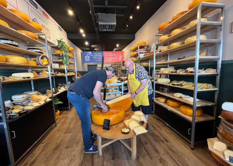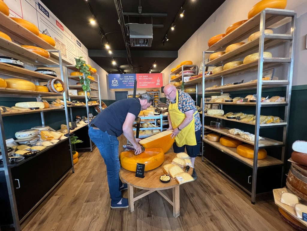 Cogimos el tren para ir a nuestro siguiente destino: Gouda. Dudamos en visitar la ciudad famosa por su queso y menos mal que lo hicimos. ¡Nos encantó! Es preciosa y el mercado central en la plaza del Ayuntamiento es fantástico. Hay muchísimos puestos de productos locales y, lo mejor, no están dirigidos exclusivamente a los turistas. Evidentemente, los que más destacan son los de queso que, además, suelen dar para probar tanto como se quiera. El mejor queso lo probamos en la tienda Kaaswinkel Gouda, en la misma plaza central. Allí mismo probamos el típico pescado frito neerlandés por solo 5 euros.
