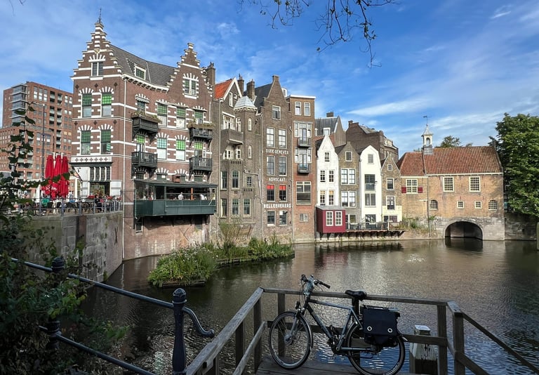 Regresamos en ferry y fuimos directamente a la estación de tren principal de Róterdam, la cual está en un edificio moderno muy espectacular. A menos de media hora en tren, se encuentra Delft, uno de nuestros lugares favoritos de los Países Bajos. Esta ciudad universitaria es realmente encantadora, llena de canales que parecen sacados de un cuento, calles adoquinadas medievales y varias iglesias que merecen la pena visitar. Sin duda, Delft es una visita imprescindible en un viaje por el país. Comimos unas deliciosas patatas fritas del House of Frites en la enorme plaza del ayuntamiento. Después, callejeamos por todo el casco histórico y sacamos mil fotos antes de tomar el tren de vuelta.