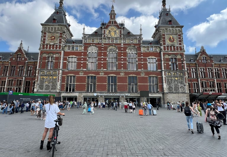 Hay conexiones de tren permanentemente entre Róterdam y la capital, aunque tardamos más de lo esperado porque primero teníamos que llegar en tranvía hasta el centro de la ciudad. Para media mañana estábamos en la estación central de Ámsterdam, construida en un edificio neorrenacentista que da la bienvenida a una de las ciudades más hermosas de Europa. Si necesitáis más información de cómo visitar la ciudad, os dejamos por aquí nuestro artículo con los mejores consejos.