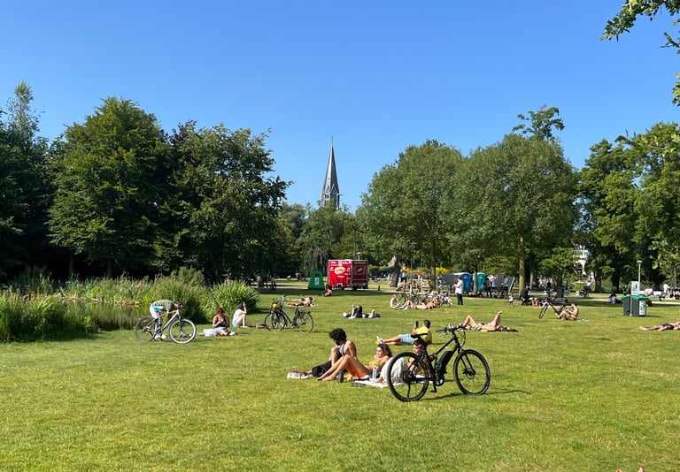Por la tarde, nos acercamos al Vondelpark, el parque urbano más importante de la ciudad, muy animado durante los meses de verano, especialmente si hace sol. Estuvimos un buen rato antes de volver al centro, concretamente, a la zona de Museumplein Park. Este es otro de los parques más emblemáticos de Ámsterdam cuya fama es debida a sus extraordinarios museos, entre los que destacan el Rijksmuseum y el de Van Gogh (aunque no accedimos a ninguno).