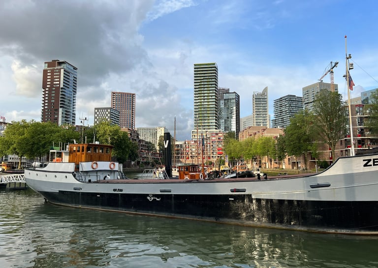 Por la tarde, hicimos una breve parada en la ciudad Schiedam que no resultó tener gran interés. Desde allí, tomamos un tranvía hasta Delfshaven, el distrito histórico de Róterdam que sobrevivió a la devastación de la Segunda Guerra Mundial. El coqueto puerto está rodeado de edificios tradicionales, cervecerías y un bonito molino al que se puede entrar por solo 5€. Sorprendentemente, pocos turistas visitan Delfshaven que, para nosotros, es uno de los barrios más interesantes de la ciudad.