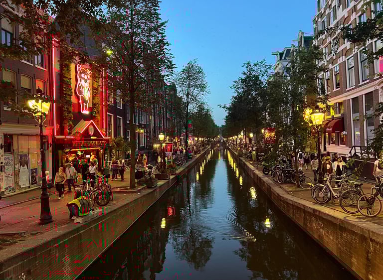 Al atardecer, nos callejeamos por la parte más antigua del casco histórico, la concurrida plaza del Palacio Real y, finalmente, el mítico Barrio Rojo. Para visitarlo en su máximo esplendor, es recomendable ir una vez haya oscurecido y cuando abren la mayoría de establecimientos, ya que durante el día puede parecer un barrio casi normal. Aquel día era demasiado temprano y todavía no estaba muy animado.