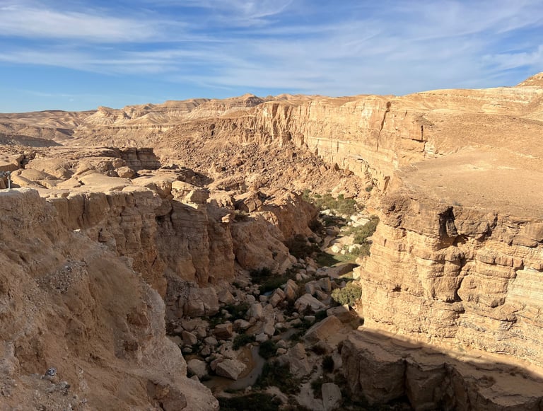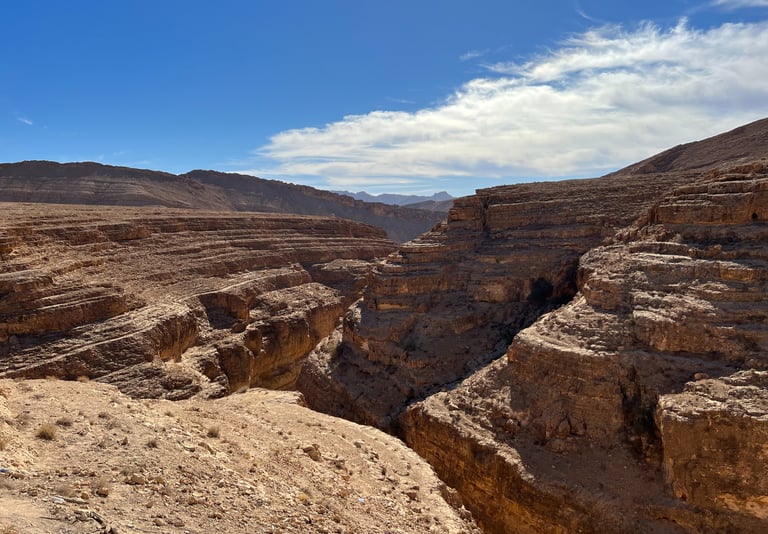 Este cañón ha sido testigo del paso de antiguas civilizaciones, y a lo largo de sus paredes se pueden encontrar restos de antiguos asentamientos. Su geología, con capas de roca que cuentan la historia del paso del tiempo, es un auténtico espectáculo para los amantes de la naturaleza y la fotografía. La vista del cañón es uno de los mayores regalos que nos llevamos de Túnez.