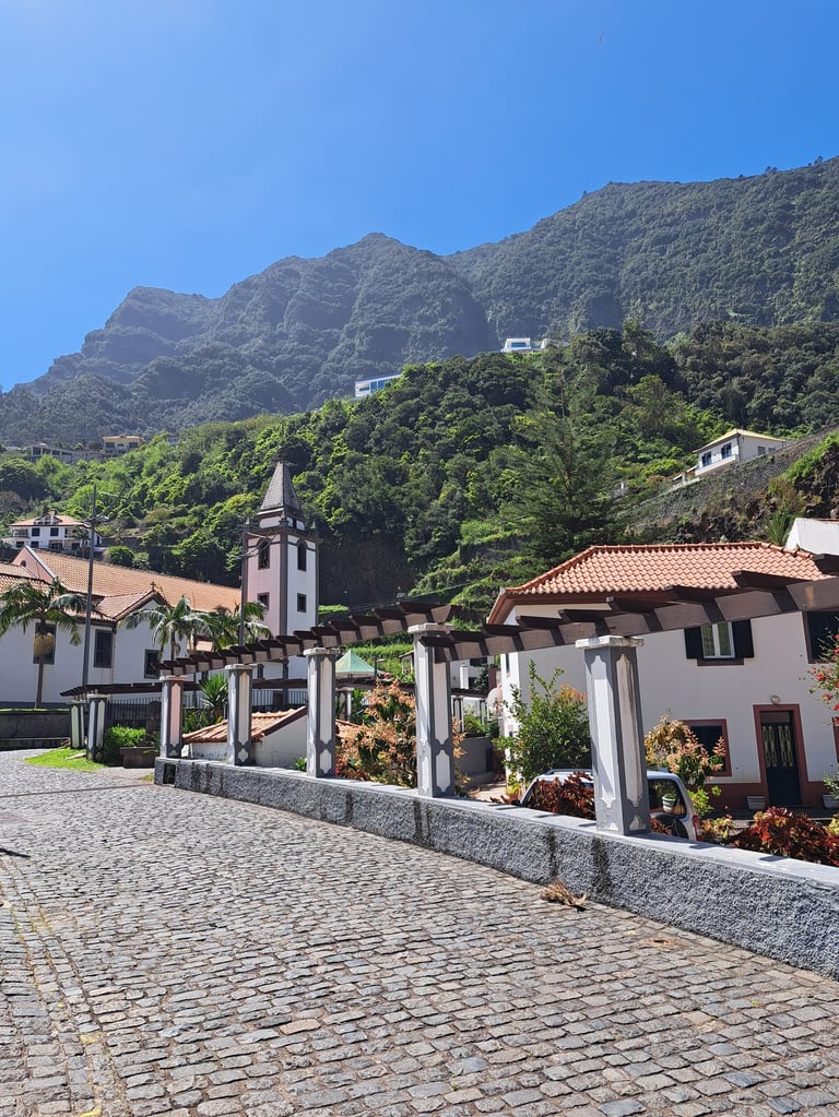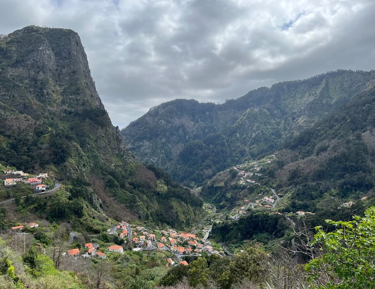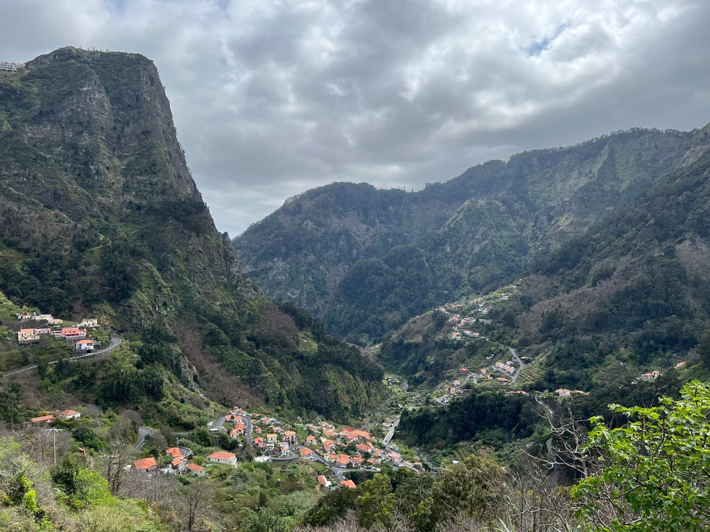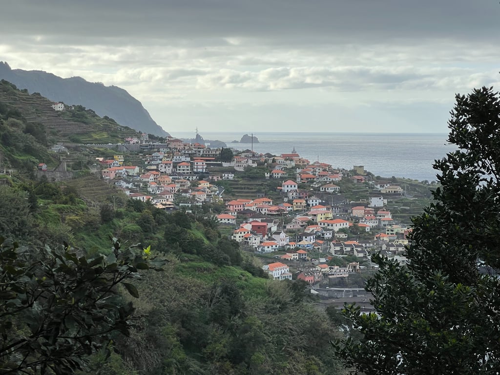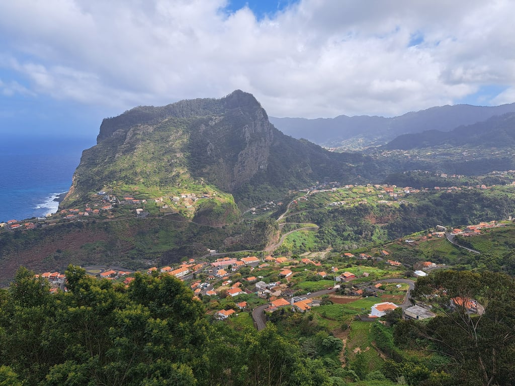 Después de desayunar en el hostal, cogimos el coche para acercarnos al pueblo de Eira do Mourao. Habíamos encontrado de víspera una caminata de unos 10 kilómetros en Wikiloc, saliendo desde el bar Fontes hasta el mirador de Chao dos Terreiros. Las vistas son magníficas y disfrutamos de la ruta totalmente en solitario. Al terminar, condujimos a través del valle de Serra de l’Agua, por una carretera llena de curvas y cuestas entre las montañas. Os recomendamos los miradores de Terra Grande y Pico da Murta. Llegamos a Sao Vicente, que para nosotros, es el pueblo más bonito de Madeira.