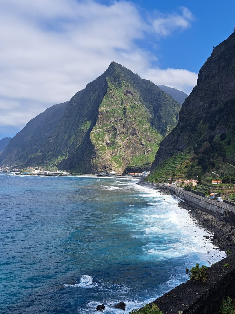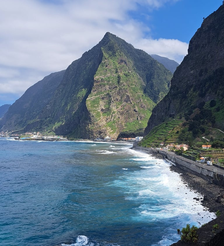 Nos dirigimos a Ponta do Sol, nuestra primera parada; un pueblo precioso en la costa, tan fotogénico como auténtico. Fuimos en abril y el mar estaba bastante bravo, y las olas ofrecían un espectáculo al romperse contra las escarpadas rocas. Intentamos llegar hasta la cercana cascada Dos Anjos; sin embargo, el túnel de acceso estaba cerrado y no conseguimos verla. Antes de salir del pueblo, probamos los típicos y deliciosos bolos de caco, en la Pastelaria Pizzaria Sol Doce.