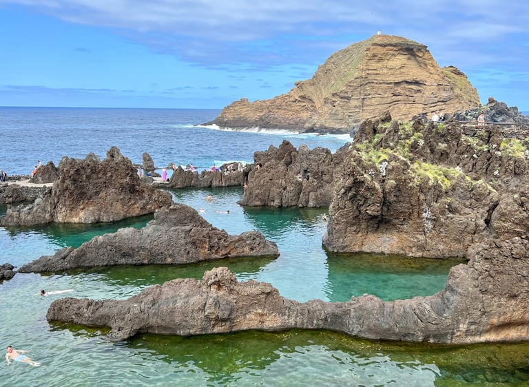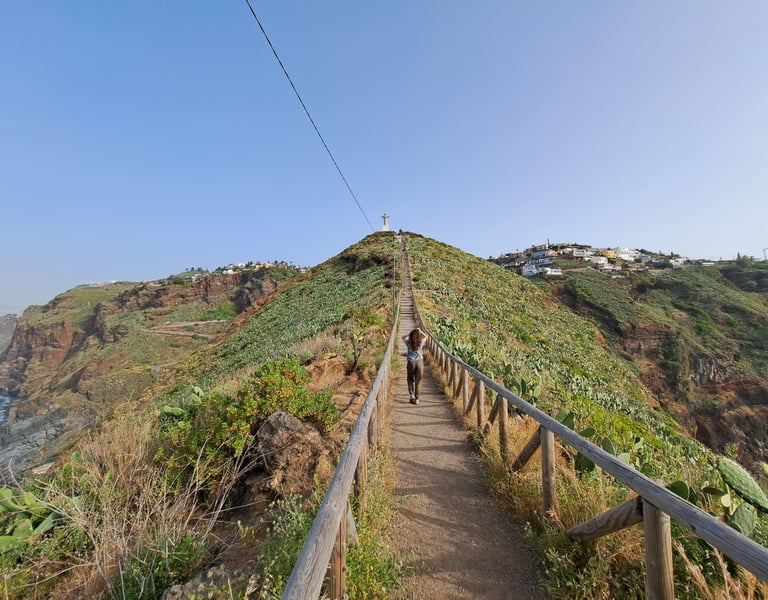 Después, condujimos hasta los acantilados de Achadas da Cruz, en el extremo oeste, donde se puede bajar andando hasta la costa y subir en teleférico al mirador. Cerca de allí sen encuentra el Miradouro do Ponta da Ladeira que no suele estar tan concurrido, y para nosotros, es el más espectacular de Madeira. Paramos también en Ponta do Tristão, otro lugar increíble en el que disfrutar del paisaje en absoluta tranquilidad.