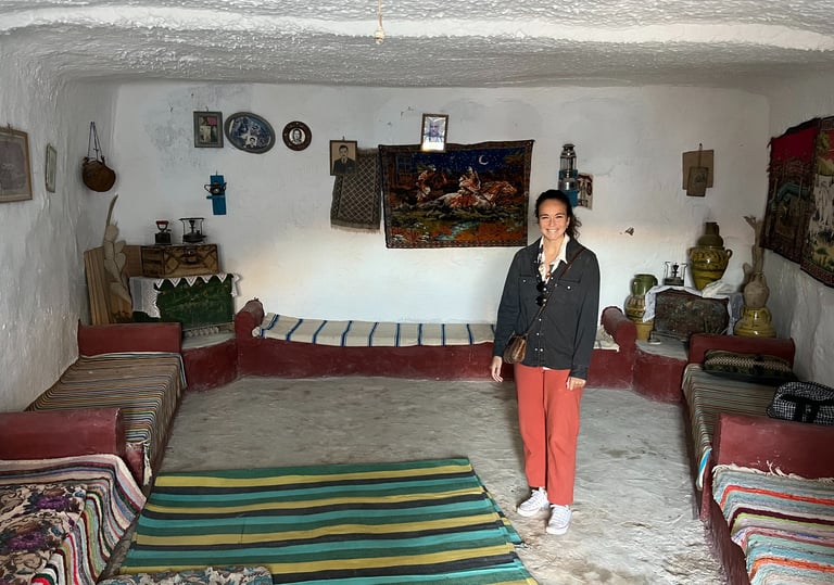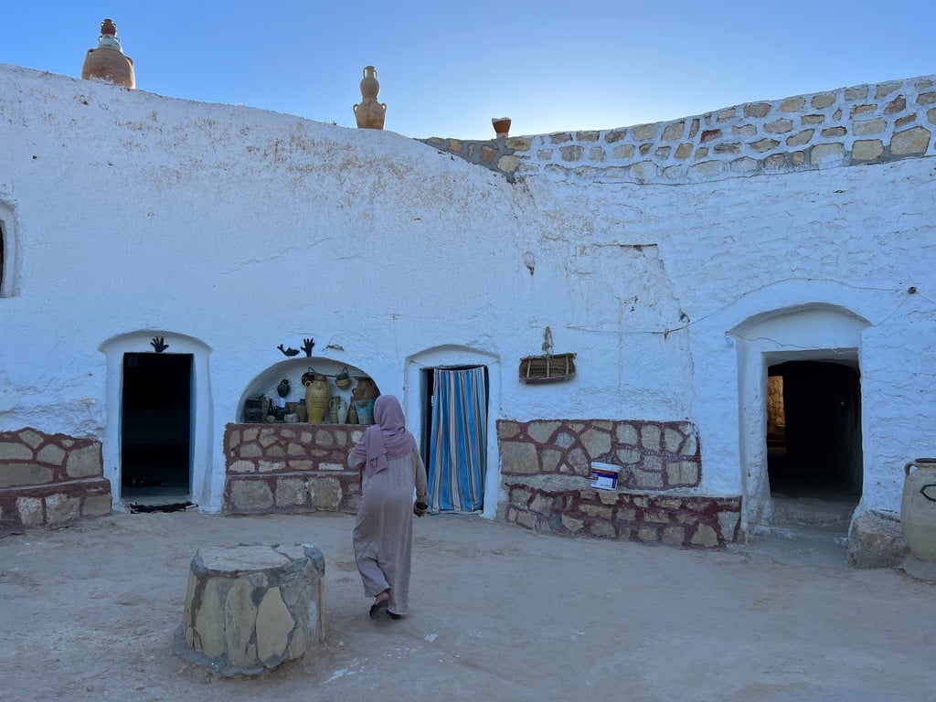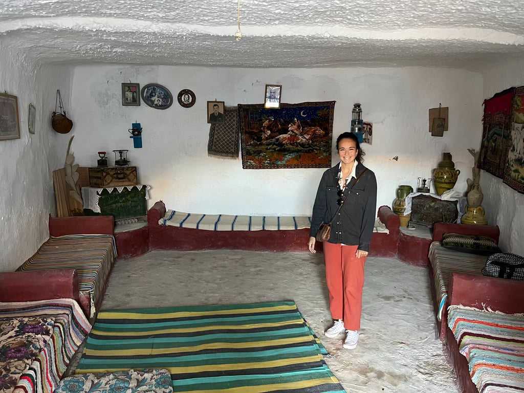 El Berber barlanglakások, donde nos recibieron con los brazos abiertos sin haber reservado ni hablado antes con ellos. Aquí pudimos charlar tranquilamente sobre la situación del país y nos invitaron a té con miel y pan. ¡Fue una de las mejores experiencias de todo el viaje por Túnez!