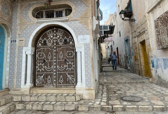 Dejamos para el final la parada más "turística" de la costa, que nos pareció que la diferencia en el número de visitantes con respecto al resto de lugares era muy llamativa. Es un pintoresco pueblo, que está prácticamente pegado a la capital, y es famoso por sus bonitas casas blancas y azules, con calles empedradas y ambiente bohemio. Aunque es bastante pequeño y suele estar muy concurrido, Sidi Bou Said es una visita obligatoria en cualquier itinerario por Túnez. Además cuenta con unas vistas panorámicas preciosas del Mediterráneo. A lo largo del pueblo, encontraréis cafeterías con encanto, varias galerías de arte y muchas tiendas de suvenires. Os recomendamos que probéis un delicioso Bambalouni, una especie de masa frita con un sabor similar al churro, y que toméis un café en el punto más fotogénico de Sidi Bou Said, el histórico Kahoua El Alia.