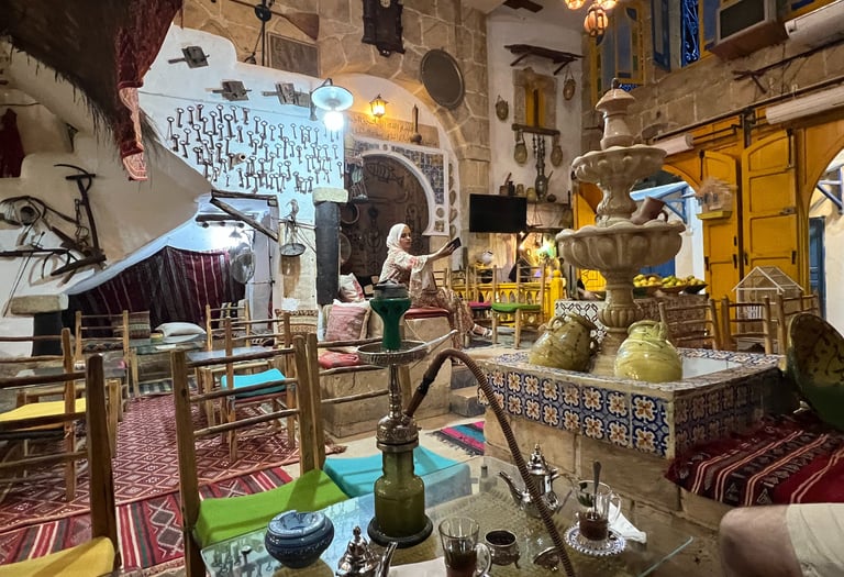 Para cenar, se puede probar algo de comida callejera o ir a un restaurante como El Kasbah, que os lo recomendamos mucho. Nosotros terminamos cenando en el Restaurant Café Seles, un lugar regentado por una familia que destaca por su tajin de pollo y el cuscús (plato nacional), ambos acompañados de la típica harissa.