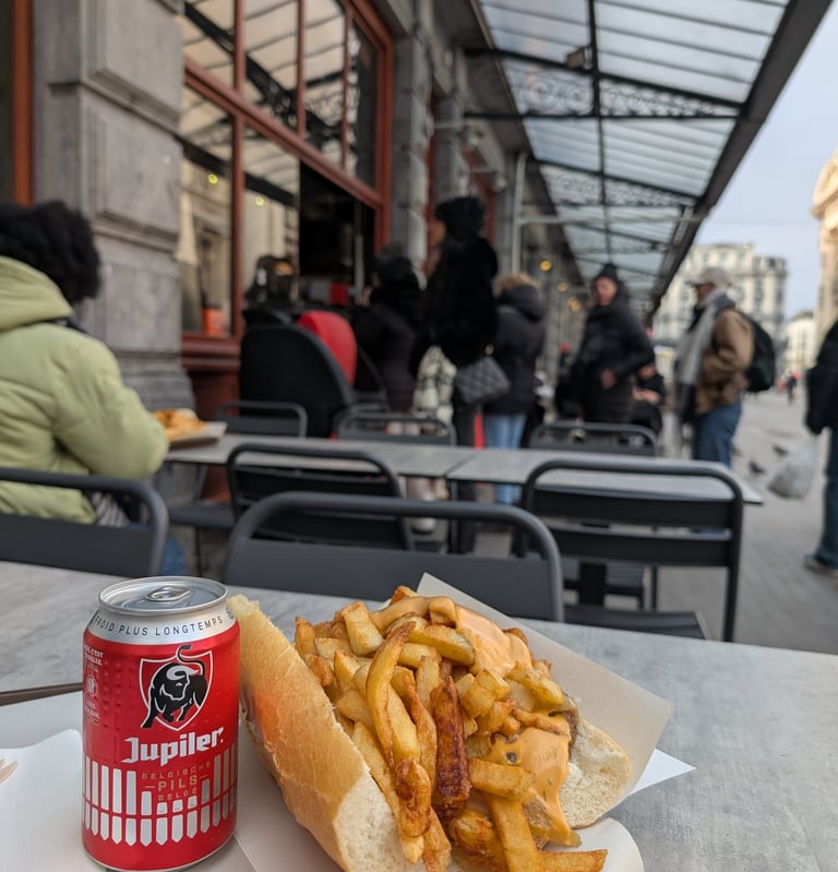 Para una experiencia rápida, auténtica y sabrosa, pasaos por Fritland y probad las mitraillettes, unos sándwiches gigantes que incluyen carne o salchichas, patatas fritas y salsas belgas, muchas salsas. Probad la andalouse, una de las especialidades del país que le va bien a prácticamente cualquier cosa. Las mitraillettes son ideales para disfrutarlas mientras continuáis vuestra exploración de la ciudad o para tomarlas con una buena cerveza mientras observáis el trajín de la capital.