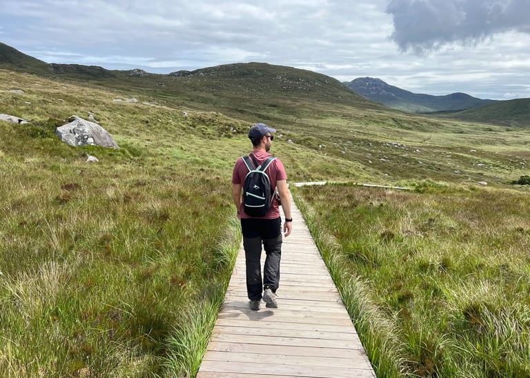 El Parque Nacional de Connemara es el más visitado de la isla, tanto por locales como por extranjeros. La caminata principal es circular, comenzando desde el centro de visitantes del parque, y es la mejor forma de conocer la zona y disfrutar de unas vistas increíbles Son un total de 7 kilómetros con 400 metros de desnivel, bastante sencilla aunque, es habitual que esté muy concurrida, especialmente en verano. Os dejamos aquí el enlace.