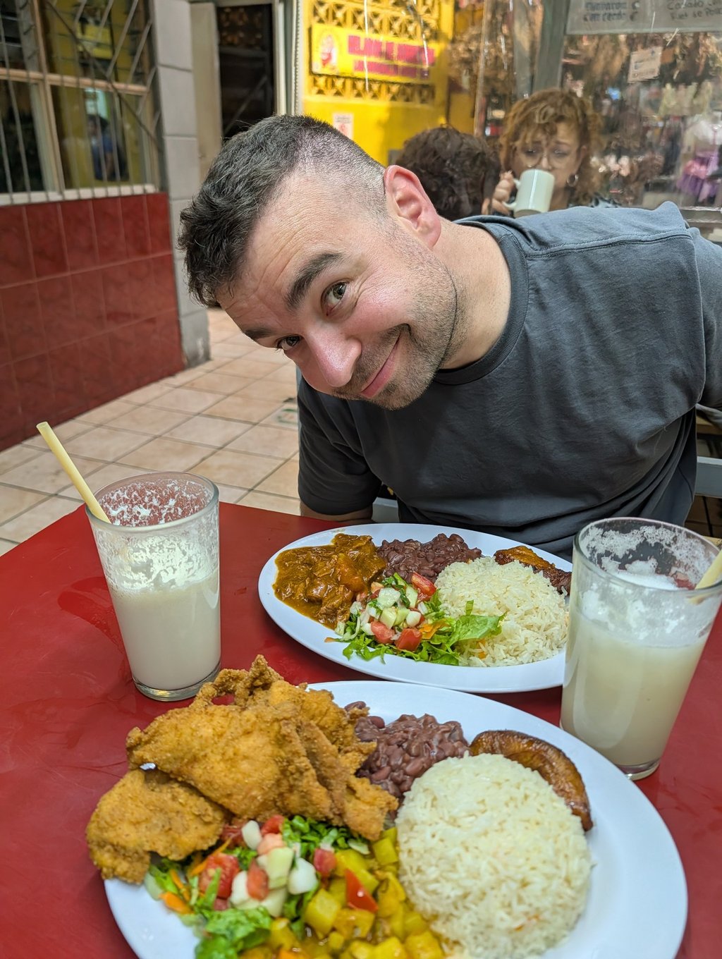 Después, aprovechamos para seguir callejeando por San José. Barrio Chino, Otoya, algunos parques, cafés locales y una ciudad que, cuanto más conocía, más me confirmaba que no sería precisamente el plato fuerte del viaje. Comimos muy bien en el Bar Restaurante París, un sitio súper local donde nos metimos una sopa azteca, camarones con chipotle, fajitas mixtas y unas Imperiales bien frías. Luego tocó pasar por Davivienda a sacar efectivo (no aceptan tarjetas) y seguir con las pequeñas gestiones viajeras 😅