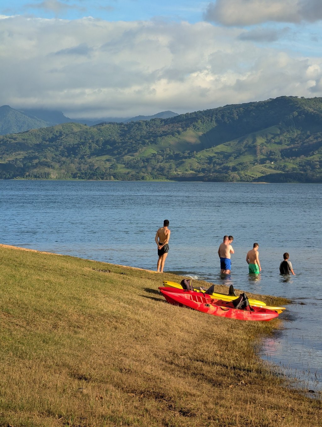 Por la tarde visitamos una zona de puentes colgantes y senderos entre bosque y miradores. Se llama Mistico Park y se encuentra en esta ubicación. Ahí mismo encontraréis el link a su página web. Conviene reservar con unos días de antelación porque el sitio es bastante popular. Lluvia, ranas, iguanas, colibríes y el mítico personaje de “Vanesa”, que nos dio para bromas internas durante el resto del viaje y que no desvelaré en este blog 😜. Volvimos justo a tiempo para otro atardecer precioso sobre el lago y nos montamos una cena memorable en el alojamiento: tortillas de patata con bolsas de patatas fritas, ensalada, cervezas y conversación larga. Sólo faltó algo de sal. Para las tortilla, digo.