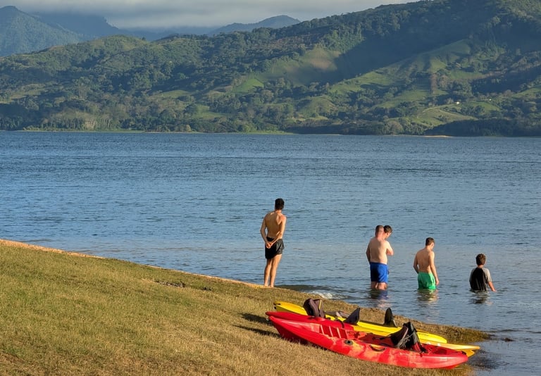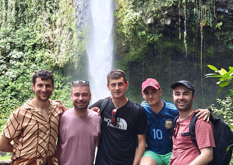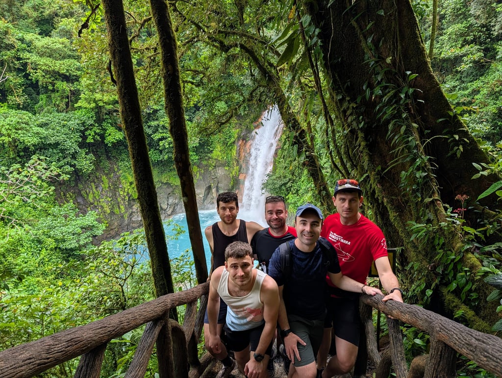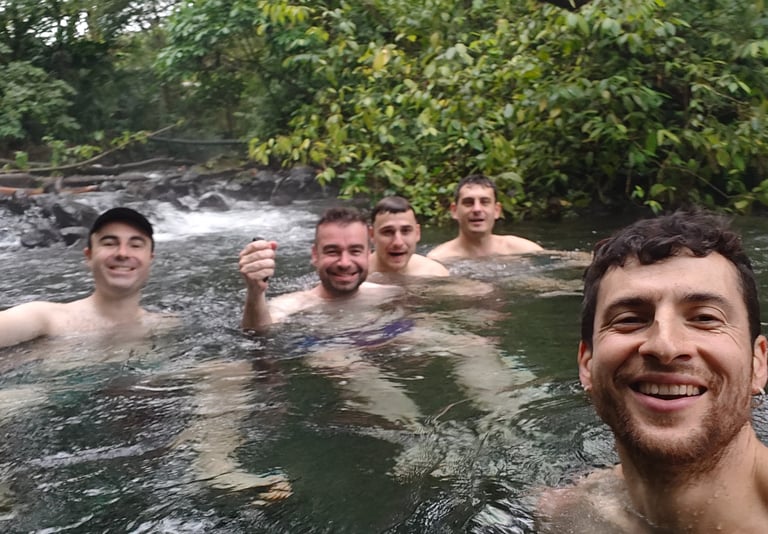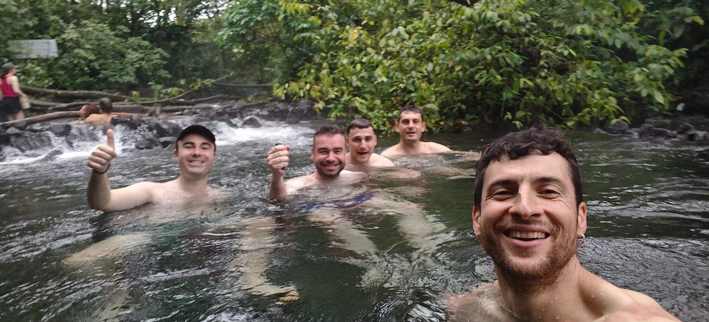 Llegamos a nuestro alojamiento cerca de la Catarata La Fortuna, compramos algo para comer y nos fuimos directos a verla. La entrada cuesta unos 20 dólares, algo que me pareció excesivo, y además estaba llenísimo de gente. Aun así, la cascada es espectacular. Muy espectacular. Uno de esos lugares que entiendes por qué se han hecho famosos, aunque al mismo tiempo te dejan pensando en los límites del turismo cuando se concentra tanto en un mismo punto. Nos bañamos allí y la experiencia mereció la pena, aunque también me reforzó una idea que me acompañó durante todo el viaje: cada vez disfruto más de lugares menos conocidos, menos icónicos quizá, pero donde pueda sentir algo más de paz y más conexión con lo que me rodea.