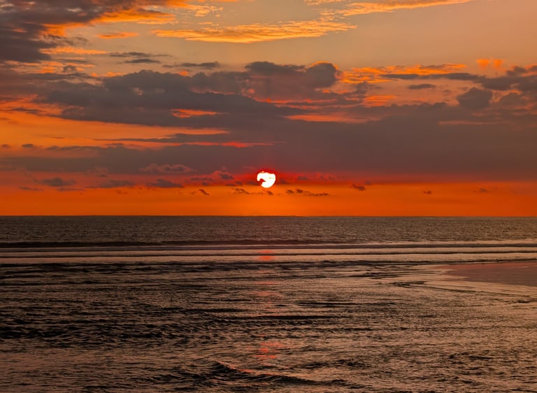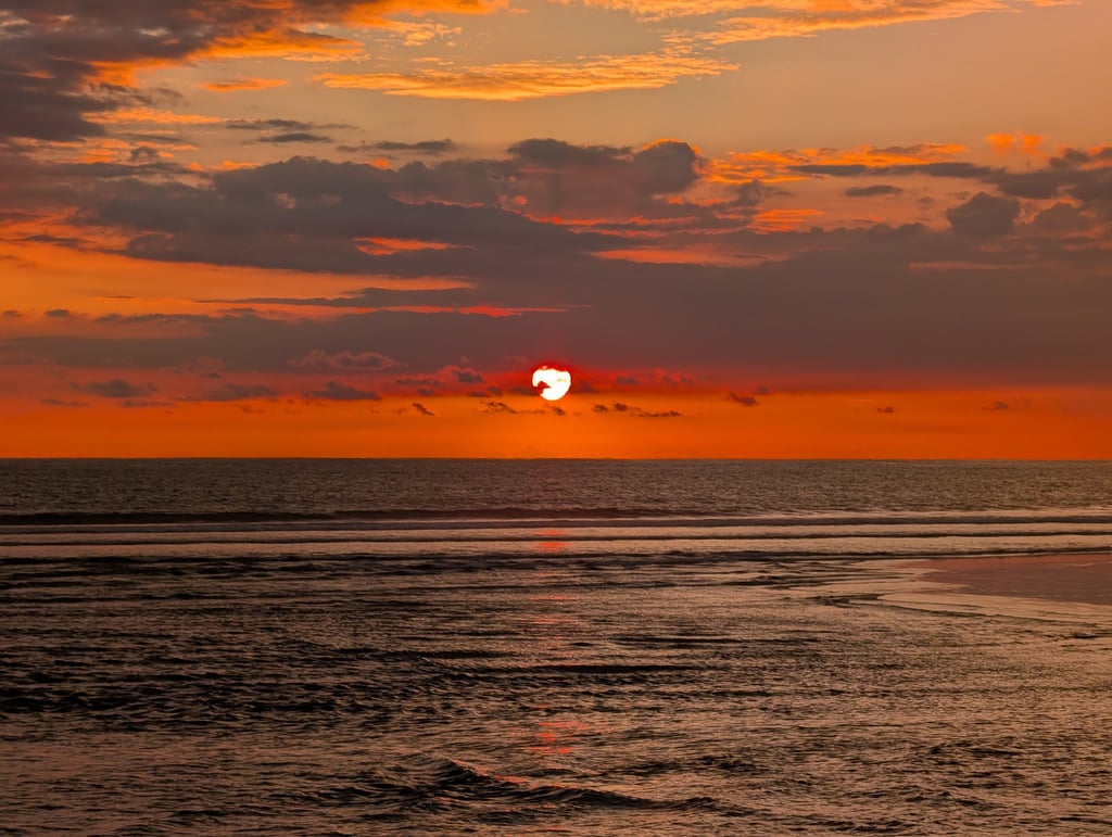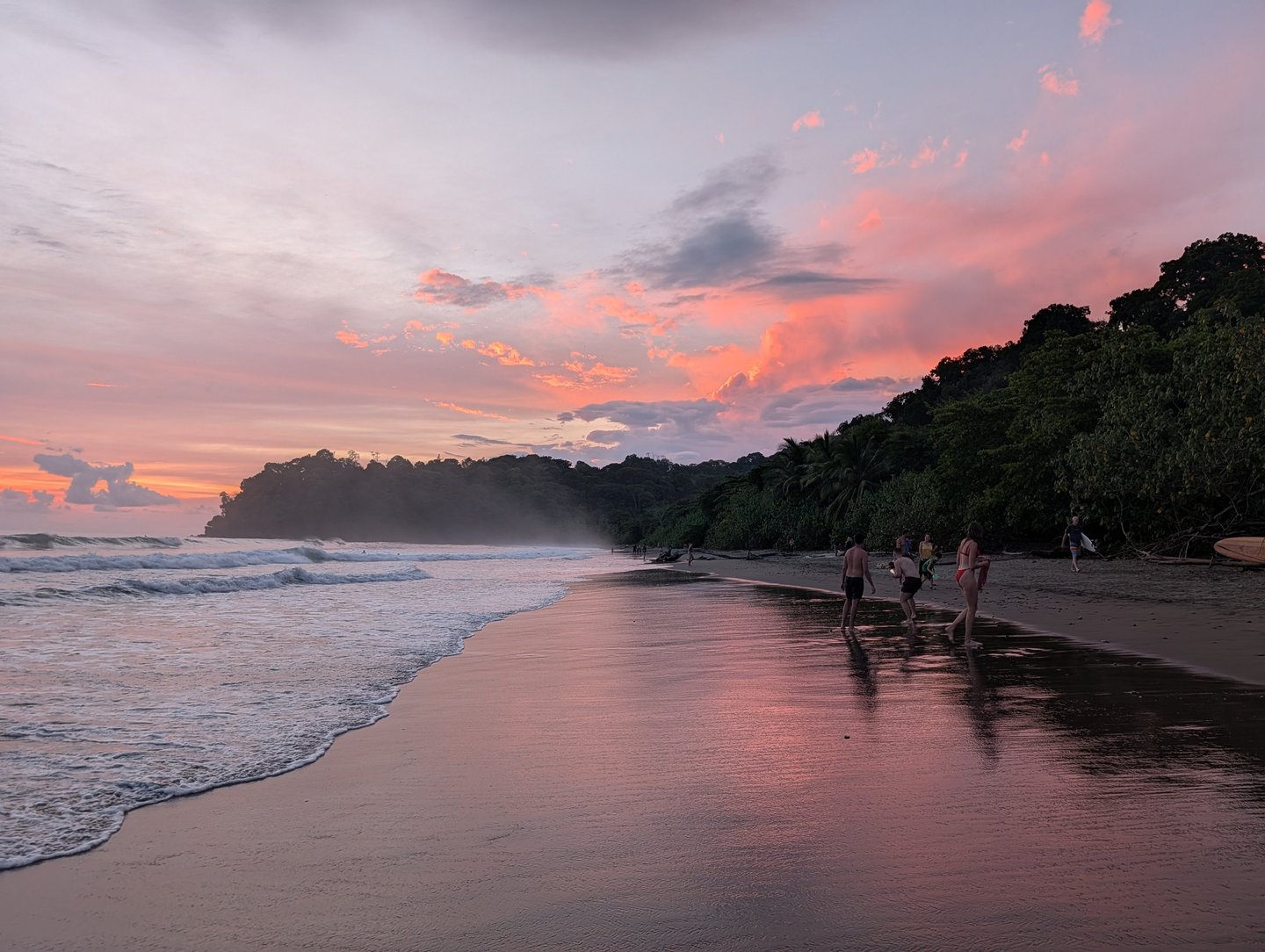 Tulemar nos pareció una maravilla y aprovechamos para darnos unos buenos baños y disfrutar del entrono con tranquilidad. Biesanz tenía ese ambiente local, vivo, con música, tragos y gente disfrutando del mar. Y llegar a Espadilla después de tantos kilómetros y tanto calor fue casi un milagro. Fue uno de esos días en los que el cansancio físico suma mucho a la experiencia. Sientes que te has ganado cada baño. Por la tarde nos acercamos a Quepos a ver el atardecer, tomar unas cervezas y cenar marisco en La Marisquería Sabromar, un lugar bastante popular. Otro muy buen día en el Pacífico en el que, milagrosamente, conseguimos vencer al intenso calor.