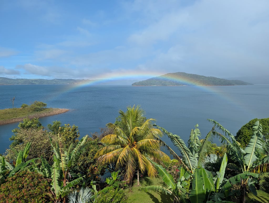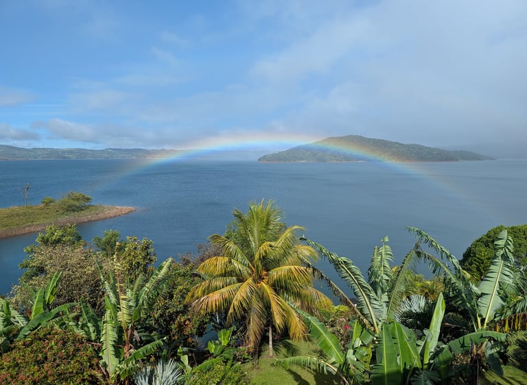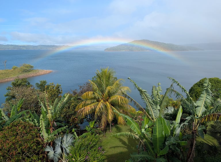 Nos despedimos del lago Arenal con un amanecer increíble y un arcoíris de regalo. La carretera hacia Río Celeste volvió a estar marcada por la lluvia, la niebla y esos paisajes de bosque húmedo que en Costa Rica son de otro mundo.