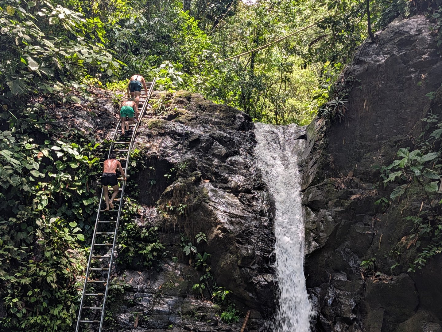 Allí vivimos uno de los espectáculos más grotescos del viaje: grupos organizados de estadounidenses lanzándose por el tobogán natural, gritando sin parar y convirtiendo el lugar en una especie de parque temático del mal gusto. Ya durante todo el viaje habíamos notado muchísimo la presencia del turismo norteamericano, pero en Costa Rica llega a extremos bastante duros de ver en ciertos lugares. Mucho ruido, poca sensibilidad y muy poco respeto por el entorno y por los demás.