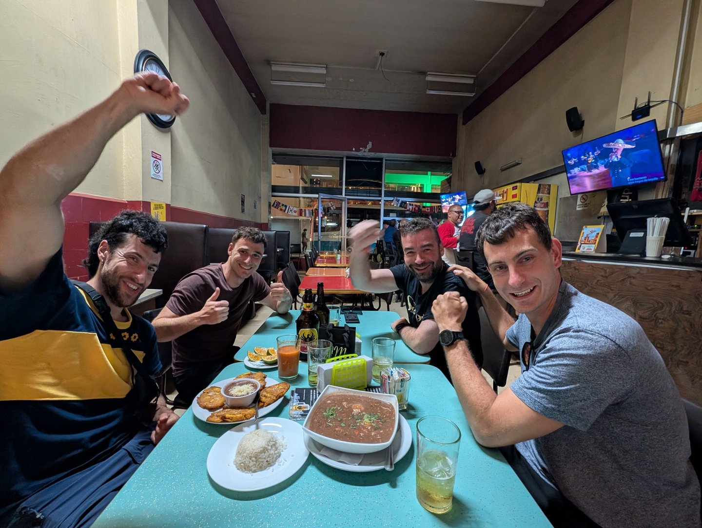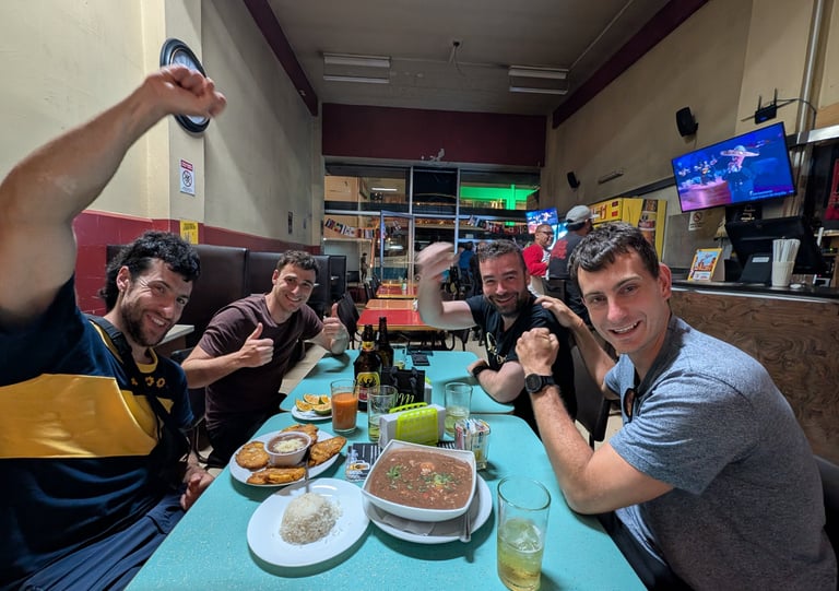 Al regresar a San José tuvimos una última reconciliación inesperada con la ciudad. Paseamos, tomamos café y acabamos en el Bar Restaurante París, esta vez los 5 juntos, donde hicimos amistad con dos ticos enamorados de Euskadi. Terminamos hablando de política, identidad, independencia, escuchando Sarri Sarri y Duncan Dhu y bebiendo cerveza invitados por ellos. Surrealista, divertidísimo y, de alguna manera, un final muy apropiado para el viaje.