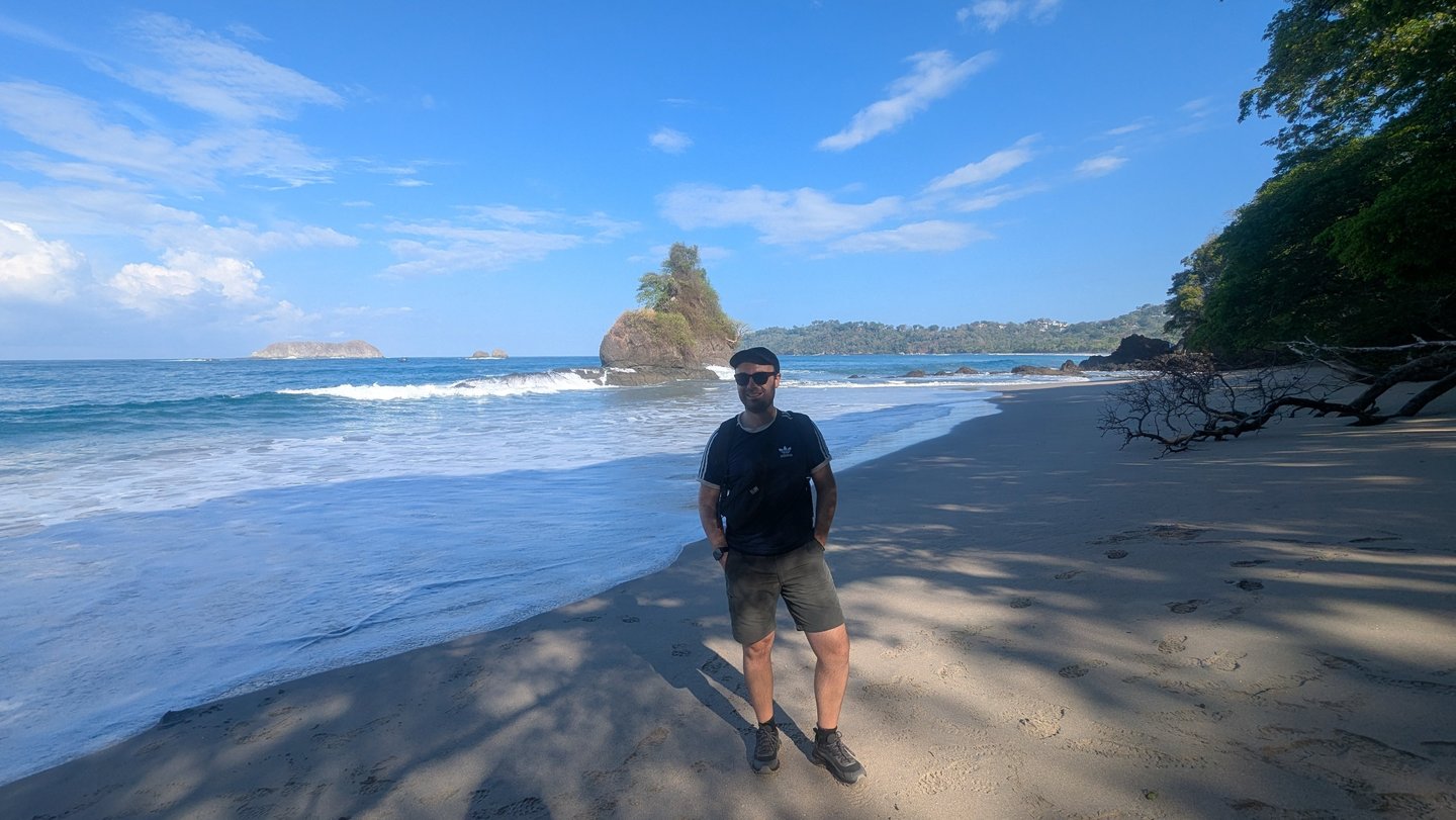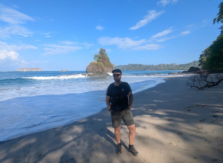 El Parque Nacional Manuel Antonio es probablemente el parque más famoso del país, y se nota desde antes de entrar. Aparcamientos privados, gente gritándote, supuestos guías presionando, malas formas y esa sensación tan fea de ser tratado como un billete andante. Fue, sin duda, uno de los peores momentos del viaje a nivel ambiente.