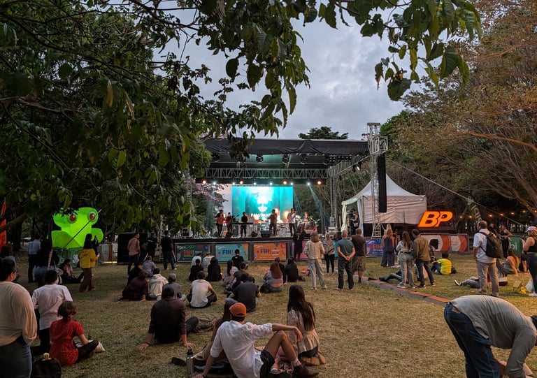 San José no nos pareció una ciudad bonita (todo lo contrario). Tampoco especialmente interesante. Tiene fama de fea e insegura, y aunque algo de eso hay, tampoco me resultó tan terrible como a veces se lee. Simplemente me parece una capital de paso, una ciudad práctica, dura, algo caótica y sin demasiado encanto para el viajero. Aun así, siempre me gusta intentar encontrarle el pulso a estos sitios. Paseamos, nos acercamos al mercado, comimos unos buenos casados en Soda San Martín y terminamos el día por la zona del Parque La Sabana, donde había ambiente, música en directo y un festival bastante animado. Fue un primer día tranquilo, de reencuentro, de aterrizar, de ponernos al día y de empezar a intuir que el viaje podía salir muy bien.
