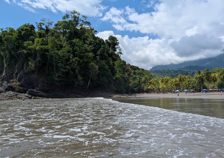 Ese día queríamos hacer Corcovado, pero entre logística y precios lo descartamos. Solo las excursiones ya se iban a más de 150 dólares y no nos cuadraba en absoluto. Así que optamos por tomarnos el día con más calma y acercarnos andando a la cascada de Uvita.