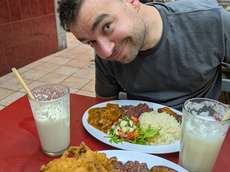 En San José me reencontré con Asier en el aeropuerto y tomamos un Uber hasta el centro. Ya desde ese primer trayecto empiezas a hacerte una idea del país: conversaciones fáciles, gente cercana, una realidad distinta a la que solemos idealizar desde fuera. Dejamos las cosas, fuimos a comprar un par de SIMs de Claro y salimos a caminar un poco por el centro.