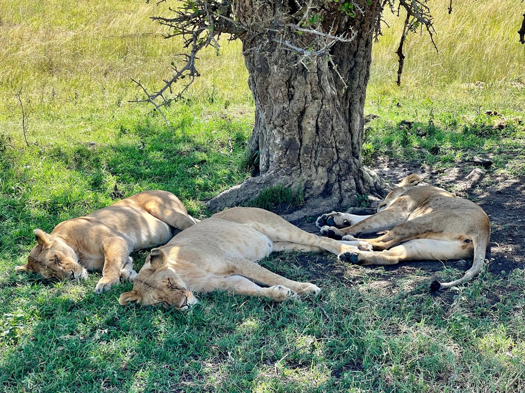 A partir de aquel día, se nos unieron dos chicas estadounidenses muy majas al safari para el resto de días. El trayecto en coche fue bastante largo hasta llegar al parque más famoso de Kenia, el Parque Nacional Masai Mara. Nos adentramos casi al atardecer y en unas pocas horas tuvimos la oportunidad de ver leopardos subidos en arboles (que según nos dijo nuestro chofer Aruni, son difíciles de ver), y también guepardos que acababan de cazar una cría de gacela. También nos topamos con leones y algunos elefantes, y muchísimas jirafas y cebras. Contemplar el atardecer desde el techo descubierto del jeep, mientras surcábamos la extensa sabana, fue un momento tan emocionante que no podíamos creer que estábamos allí. Sin duda, ir de safari es una experiencia que recomendamos hacer al menos una vez en la vida.