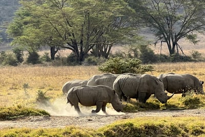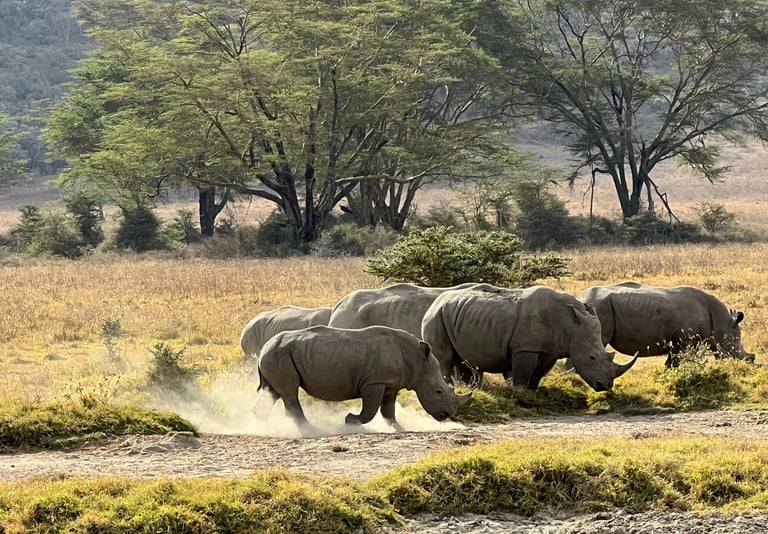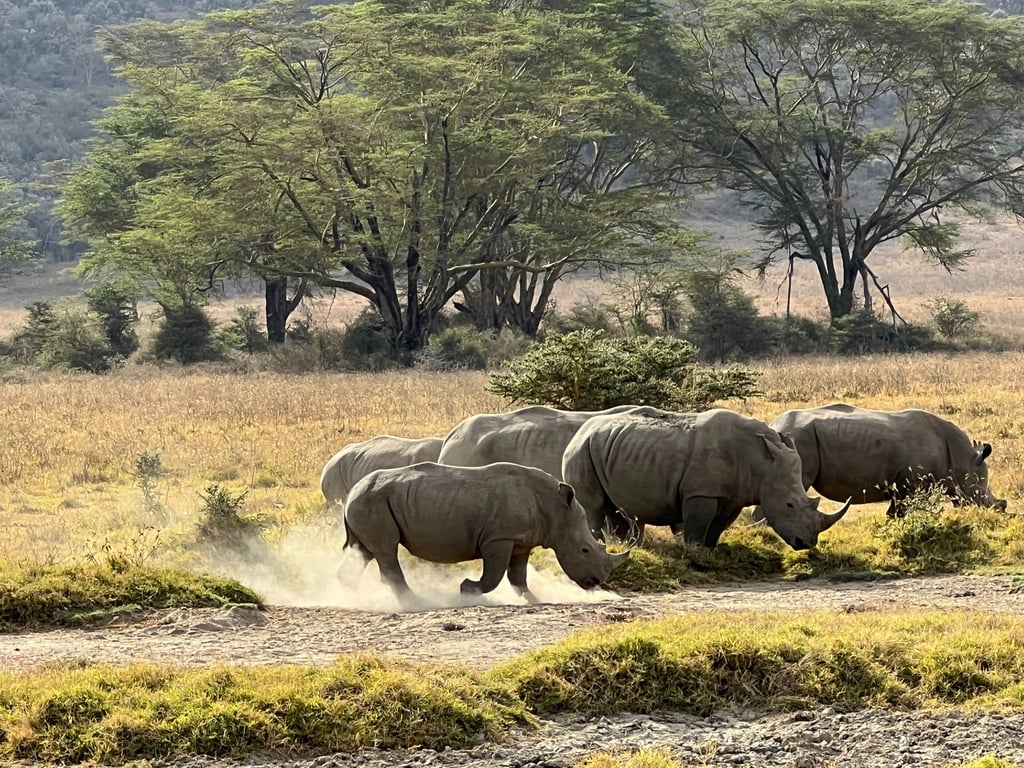 No obstante, este parque nacional es famoso por albergar uno de los animales más difíciles de avistar, debido al importante riesgo de extinción en el que se encuentra. Nakuru es de los mejores lugares de Kenia y del mundo para ver rinocerontes. Nosotros tuvimos la suerte de cruzarnos con una gran manada de rinocerontes blancos y también con alguno gris en solitario. Además de estos magníficos mamíferos, en Nakuru habitan una enorme cantidad de babuinos, y una subespecie de jirafa diferente llamada jirafa de Thompson.