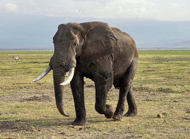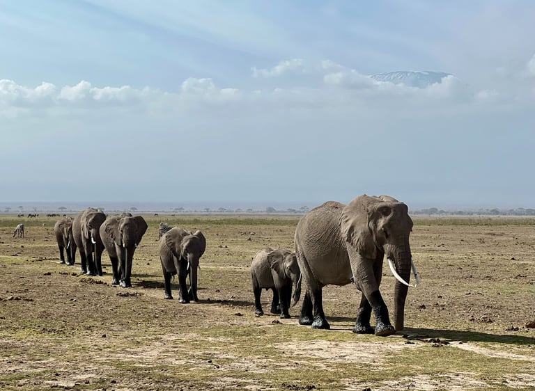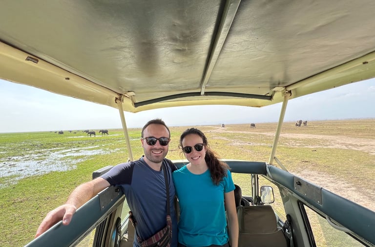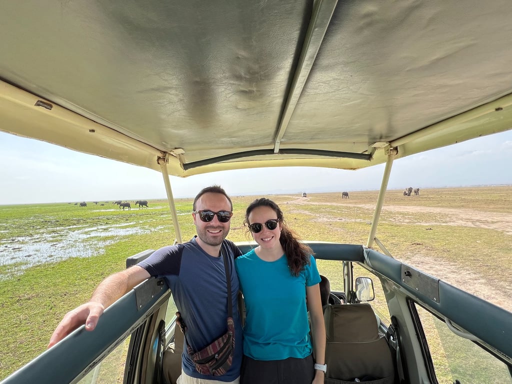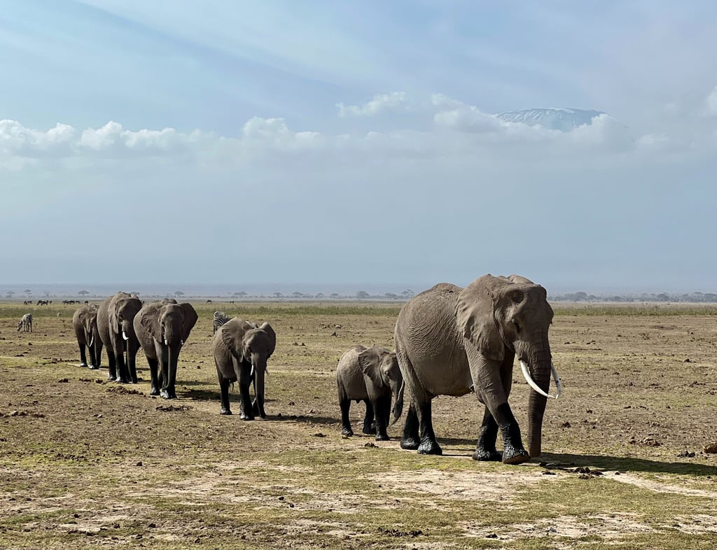 Estábamos muy contentos de disponer de un día completo para disfrutar de Amboseli y recorrer cada rincón del maravilloso Parque Nacional. El amanecer fue muy nítido y desde el campamento, justo enfrente, teníamos unas preciosas vistas al monte Kilimanjaro. Durante el largo día de safari, vimos todo tipo de animales, pero sobre todo elefantes. Sin duda es el parque de estos magníficos mamíferos. También vimos cebras, búfalos y algún hipopótamo. Fue un día intenso de búsqueda de animales en libertad, para acabar bien y saciarnos de safari por bastante tiempo. Cuando lo contratamos, pensábamos que iban a ser unas pocas horas de safari al día y que el resto del tiempo estaríamos en el alojamiento; pero, ¡nada más lejos de la realidad! Prácticamente salíamos al amanecer y no parábamos hasta la puesta de sol. Pudo influir que nuestro chófer y guía Aruni fuera un hombre encantador y experimentado, que nos ayudó en todo momento e hizo que la experiencia fuera inmejorable. ¡Recomendamos Karibu Safaris totalmente!