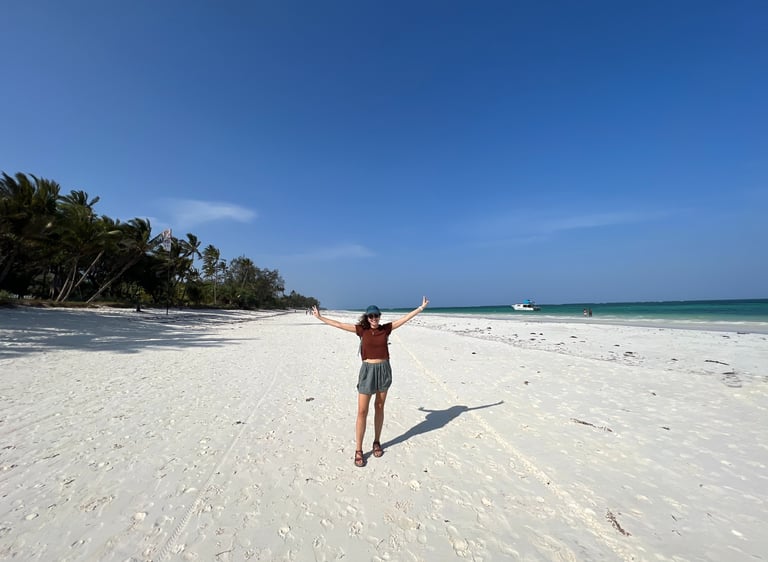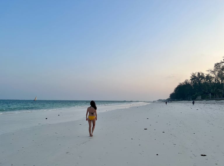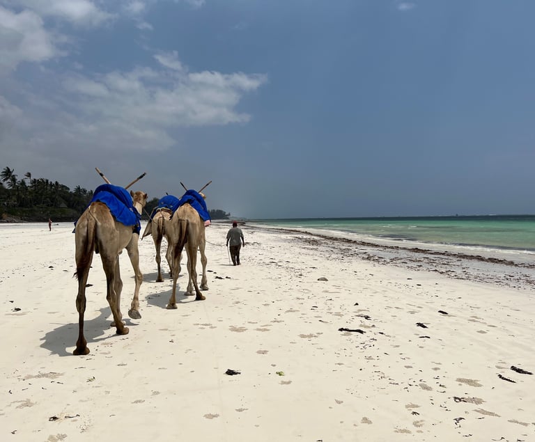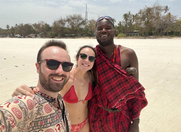 Las playas de Kenia fueron una grata sorpresa para nosotros, ya que apenas habíamos podido encontrar información antes de ir y muy poca gente de nuestro entorno había estado allí antes. La playa de Diani tiene una extensión de casi 20 kilómetros de arena blanca fina, y prácticamente no hay infraestructura turística, ni gente. El agua es de un azul turquesa intenso, está a unos 28ºC durante todo el año, y se pueden ver peces tropicales y estrellas de mar, sobre todo durante la bajamar. No hemos estado en una playa más idílica para descansar y para reencontrarse a sí mismo que la de Diani. Indudablemente, es uno de los mayores paraísos secretos que hemos encontrado durante nuestros viajes. Es muy típico combinar el safari por Kenia con una estancia en la isla Zanzíbar, perteneciente a Tanzania, y ubicada enfrente a muy poca distancia de Diani. Nosotros no conocemos Zanzibar (que seguramente será precioso también), pero pensamos que no hay que descartar tan fácilmente la opción visitar la costa keniana, además de que resulta escandalosamente más barato.