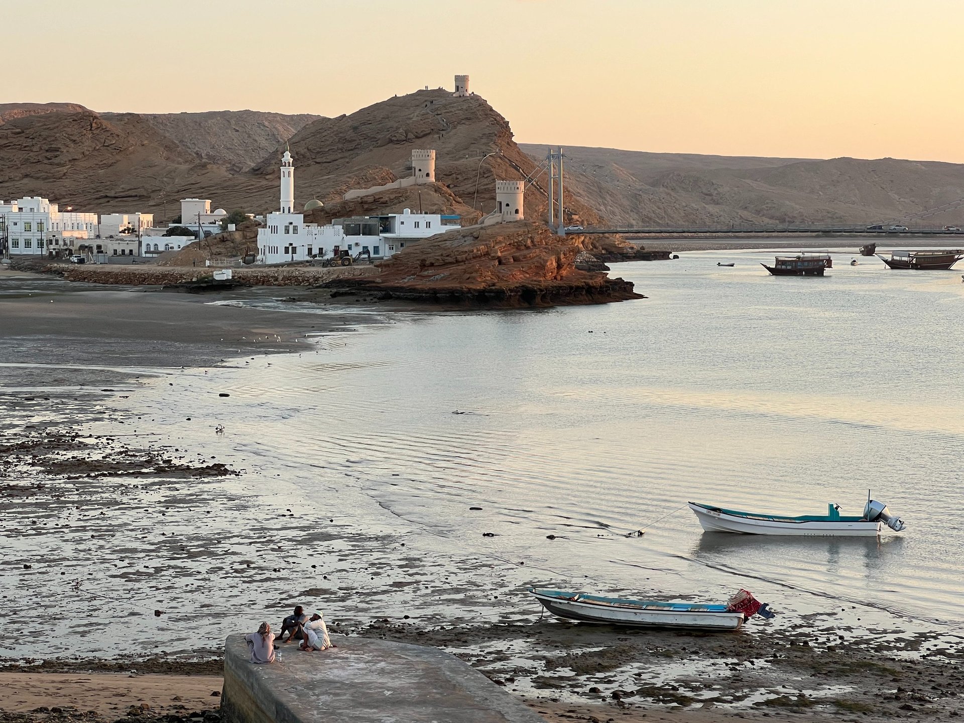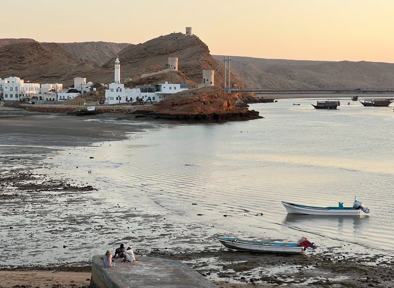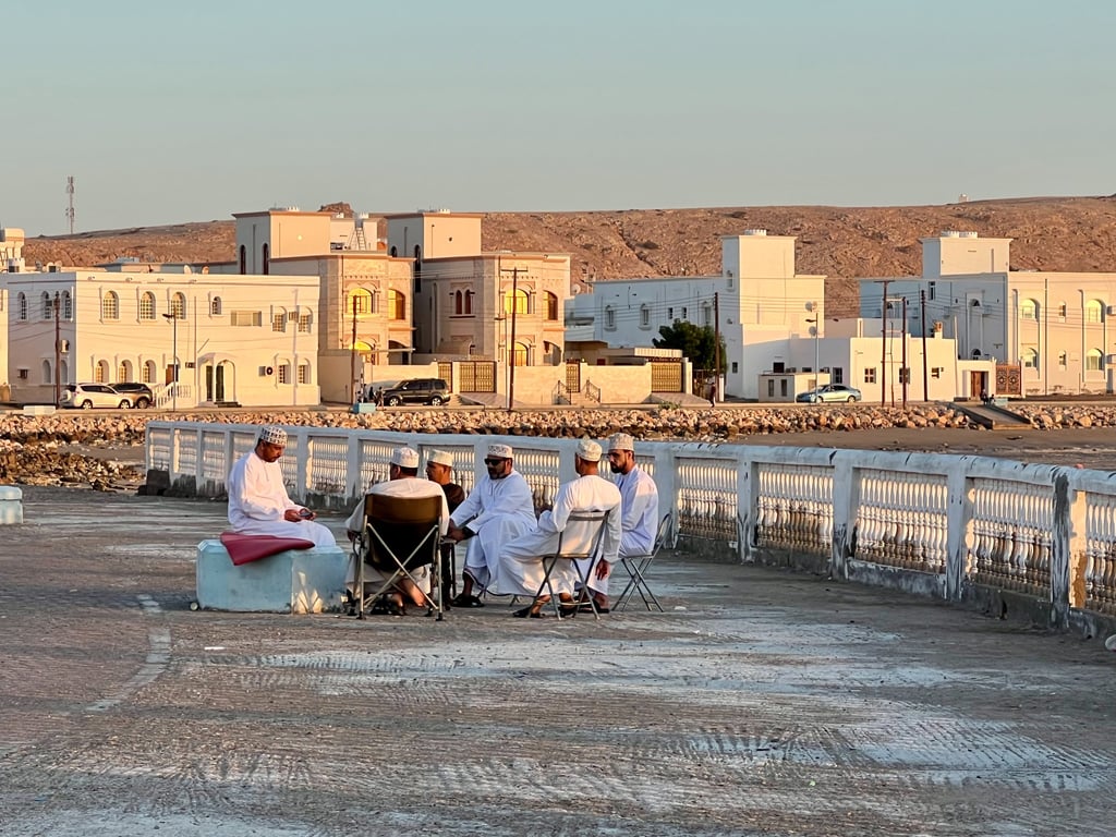 Paramos a comer en el pueblito Tiwi, saliendo de la carretera principal cerca del Wadi. Después, llegamos a la ciudad Sur, y tras dejar las mochilas en el Hotel Zaki (totalmente recomendable), fuimos a conocer la ciudad. Primero nos acercamos en coche hasta el faro en el barrio Al-Ayjah, un lugar ideal para compartir el precioso atardecer en tranquilidad junto con familias omanís. Ya por la noche, dimos una vuelta por el casco antiguo de la ciudad que, aunque no tenga especial interés, éramos los únicos extranjeros y fue una muy buena experiencia. Curiosamente, el mercado local es de noche, y hay mucha vida a partir de las ocho en comparación con la mayoría de países del mundo.