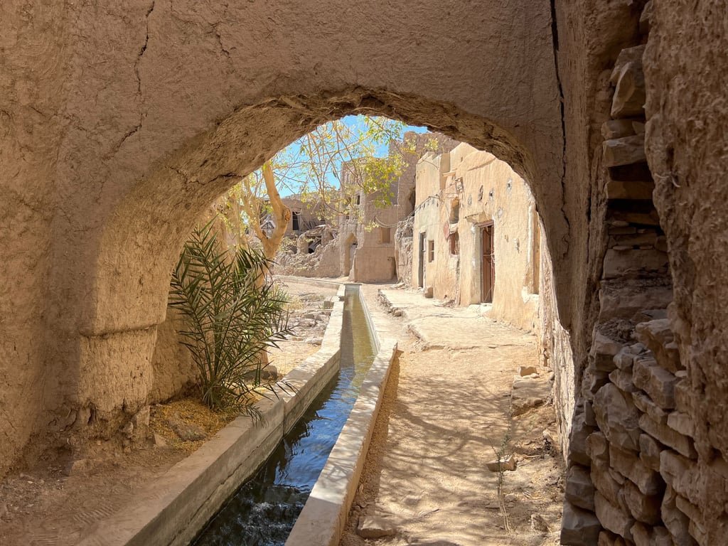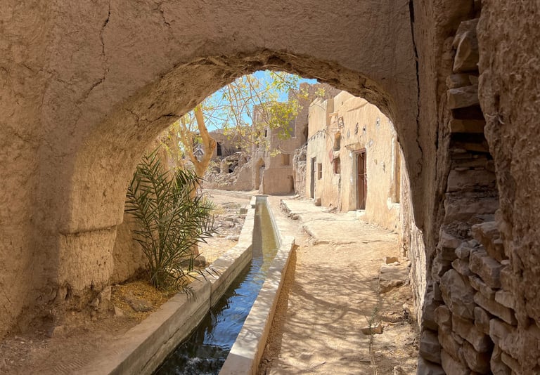 Tras terminar, fuimos en coche hasta el pintoresco pueblo Misfat Al Abriyyin, bastante turístico para los estándares del país. Desde donde Misfat las vistas de todo el valle son magníficas y también se pueden recorrer sus callejuelas y las plantaciones irrigadas con el tradicional Falaj.