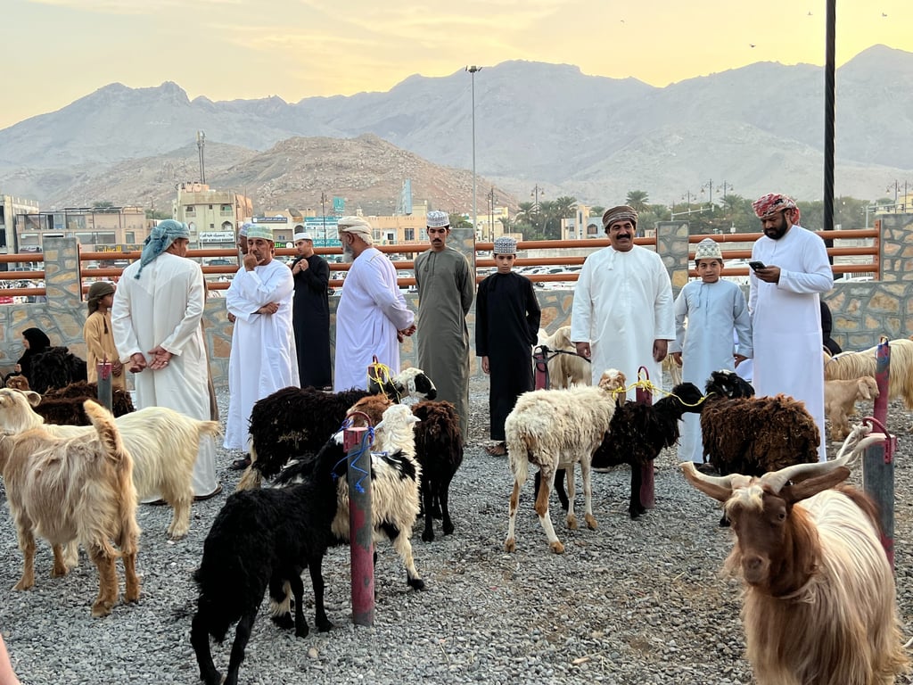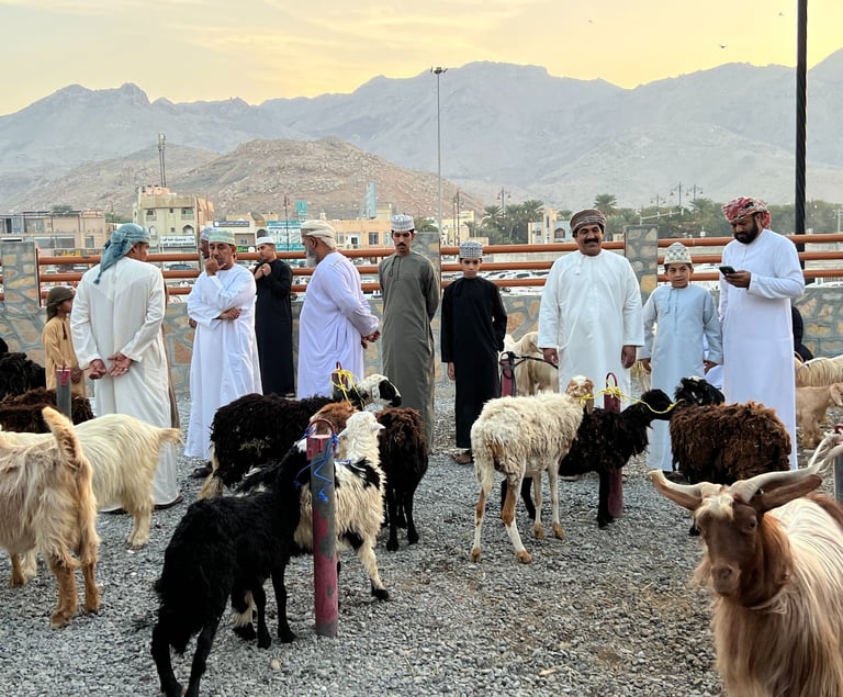 Habíamos planificado el viaje para que el viernes por la mañana estuviéramos en Nizwa y poder asistir al famoso mercado de ganado. ¡Es algo imperdible de un viaje a Omán! Madrugamos mucho y nos acercamos a la zona de venta de ganado; había desde cabras, ovejas y vacas, hasta camellos recién nacidos. Pensábamos que podía ser una trampa para turistas, pero nos quedamos asombrados al ver que el mercado de ganado de Nizwa sigue siendo una forma de comerciar en la zona y es completamente auténtico. Además de animales, también hay puestos de alimentos, tanto carnes, como todo tipo de verduras y algunas frutas. Incluso había un puesto donde vendían fusiles y escopetas. Recorrer el mercado de Nizwa de los viernes es una experiencia sin igual.