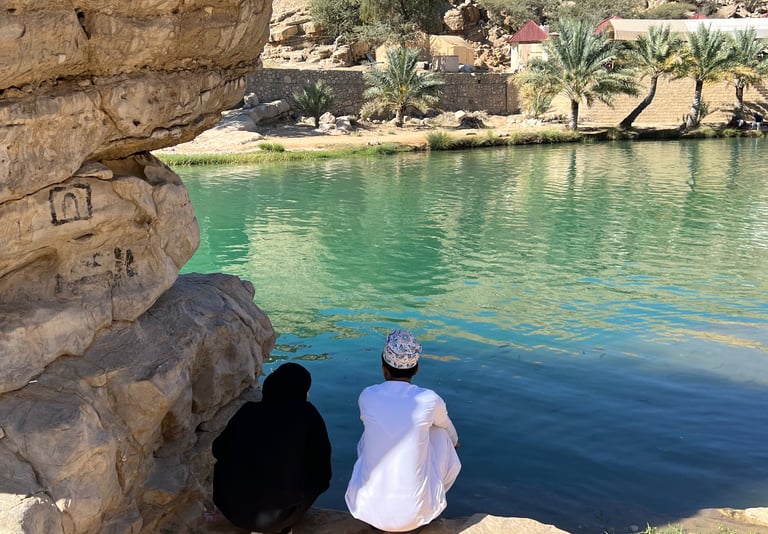 Por la mañana, hicimos una breve visita a la fábrica de Dows de la ciudad de Sur, donde todavía siguen construyendo y renovando estos preciosos barcos tradicionales del Océano Índico. Después, nos esperaba un buen tramo de carretera, atravesando puertos de montaña y extensas plantaciones de palmeras datileras, hasta llegar a Wadi Bani Khalid, que junto con Wadi Ash Shab, es el más visitado del país. Lo mejor en Bani Khalid es subir a contracorriente por el río hasta llegar a una cueva a la que se puede acceder con una linterna. En la parte baja del wadi, hay un bonito lago y varias zonas de baño para los que no se aventuren a hacer todo el recorrido.