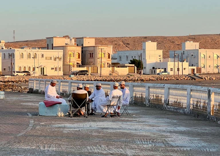 Antes del anochecer, nos acercamos al Parque Riyam, donde se encuentra el incensario más grande del mundo, que estaba repleto de familias disfrutando de la tarde del viernes (su día de la semana más importante). Dimos un paseo por la famosa Corniche, un paseo marítimo de varios kilómetros muy frecuentado por los locales, especialmente a partir de las ocho. Para terminar el día, cenamos un delicioso pescado en el restaurante Aroos Al-Bahar. ¡Totalmente recomendable!