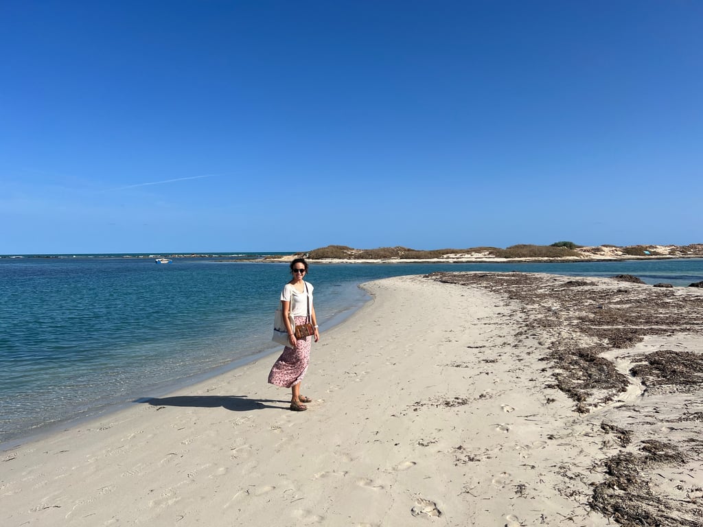 Al mediodía fuimos a la playa la Laguna por recomendación de Leila y ¡nos encantó! Apenas había gente y el paisaje es precioso. Es una playa ideal para pasear y bañarse. Después, fuimos en coche a recorrer la costa oeste y paramos en varias mezquitas blancas situadas junto al mar, desde donde se disfruta del mejor atardecer de Djerba. Regresamos a Houmt Souk para cenar, porque el resto de la isla es tan tranquila que apenas hay restaurantes, ni otros establecimientos. Para más información sobre esta peculiar isla, os dejamos nuestro artículo de Djerba.