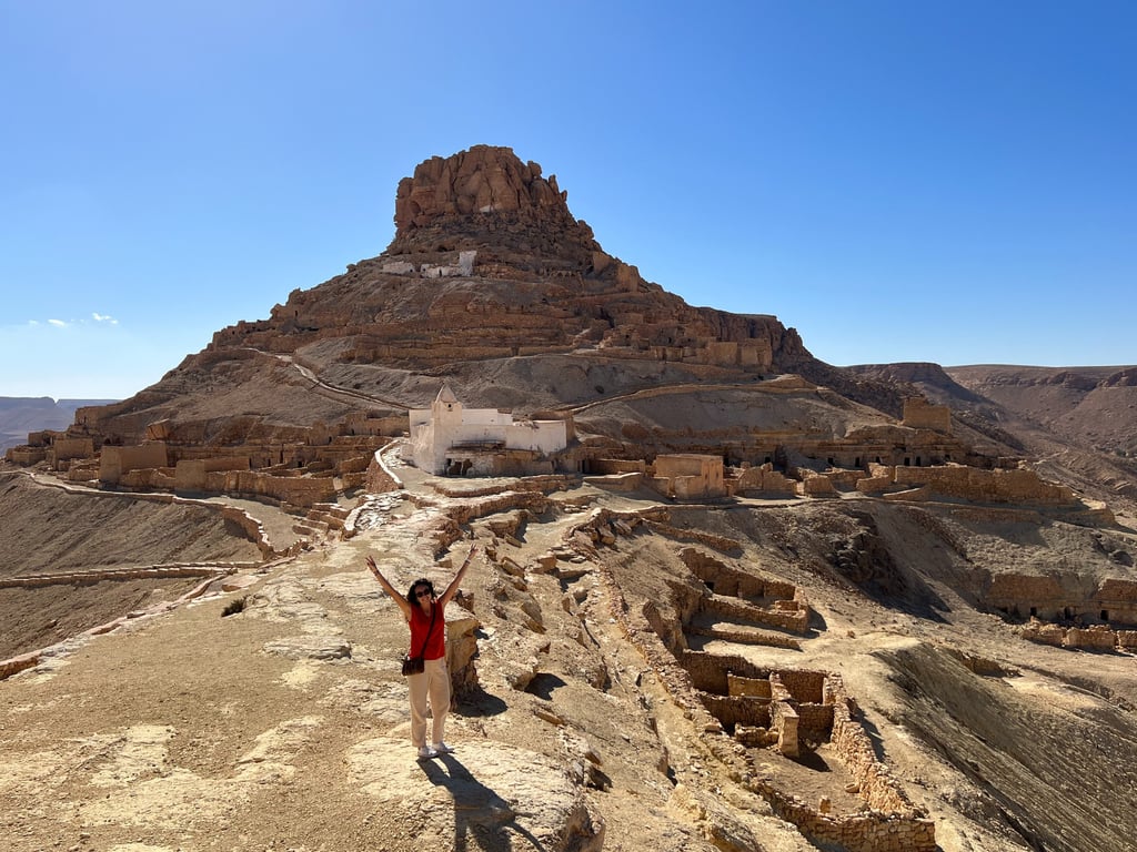 Desayunamos a las 8:00 para que nos diera tiempo de visitar todos los lugares que teníamos previstos para el día. Nuestra primera parada fue el Ksar Hadada, un antiguo lugar de almacenaje reconvertido en hotel, que recorrimos con tranquilidad y disfrutamos de ser los únicos turistas, una vez más. Continuamos la ruta hasta el pueblo Guermassa, desde donde se puede subir caminando al pueblo histórico, actualmente abandonado, que tiene buenas vistas de todo el valle. En la mayoría de estos antiguos pueblos (o Ksars) ocurre algo similar y el lugar donde vive la gente hoy en día se encuentra un par de kilómetros más abajo. Visitamos también el Ksar Chenini, seguramente el más visitado de toda la región y, al mismo tiempo, el menos auténtico. No estuvimos mucho rato y fuimos al siguiente pueblo, llamado Doiuret, que era muchísimo más tranquilo (igual que Guermassa). Hemos profundizado sobre los Ksars en el siguiente artículo.