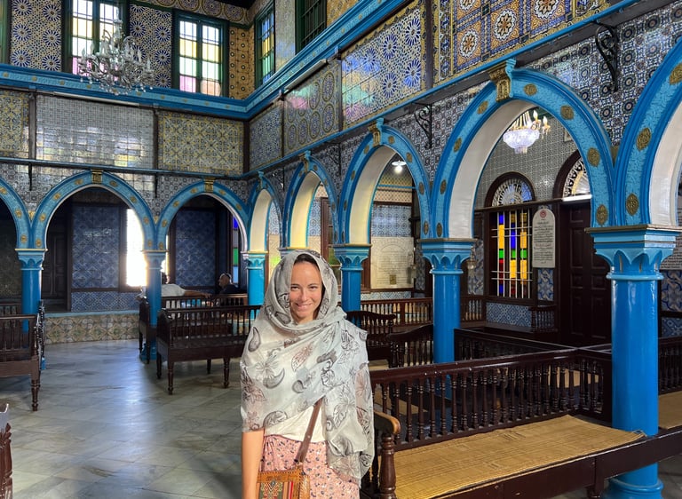 Tras desayunar increíblemente bien en Maison Leila, salimos hacia nuestra primera parada del día en el barrio Djerbahood. La verdad que no teníamos grandes expectativas del lugar, ya que apenas encontramos fotos en internet (como nos pasó con toda la isla en general), pero nos sorprendió muchísimo. Djerbahood es un barrio tranquilo, lleno de coloridos murales donde se respira una paz y tranquilidad propia de sus habitantes. A pocos kilómetros está la Sinagoga Ghriba, conocida por ser de las más antiguas de la región y haber sido lugar de varios atentados en los últimos años.