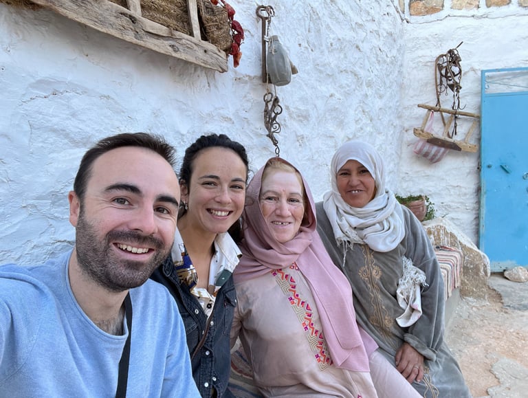 Al amanecer, dimos un paseo por Tamezret, que a diferencia de los Ksars del día anterior, este pueblo sí está habitado. Después, queríamos visitar los míticos “poblados trogloditas” de Matmata, y tuvimos la suerte de adentramos en una autentica casa troglodita, donde una señora nos enseñó su forma de vida y nos invitó a té, sin pedir nada a cambio. Si queréis saber más sobre estas construcciones y planificar vuestra visita, os dejamos nuestro artículo por aquí.
