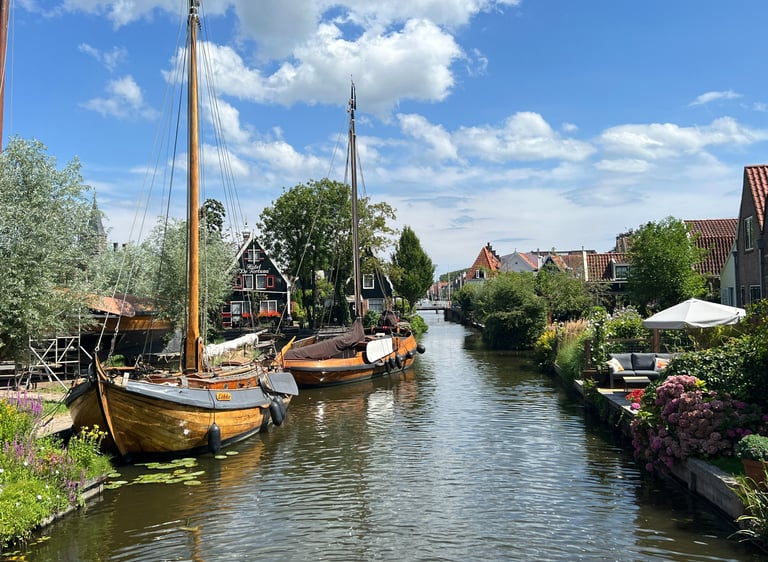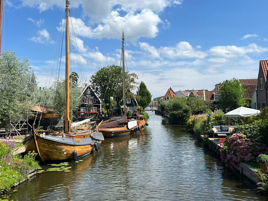 Nos cuesta imaginarnos un pueblo con más encanto que Edam. Situado a 25 kilómetros de Ámsterdam, es el típico pueblito neerlandés de cuento lleno de canales y preciosas casas tradicionales. Además, es conocido por ser la cuna de uno de los quesos más famosos del país (y del mundo), que lleva su mismo nombre. Para degustar el queso edam, se puede ir a la tienda Henri Willis (omnipresente en todo el país), situada en el diminuto casco histórico de Edam. Una experiencia mucho más auténtica es asistir a la subasta de quesos que se celebra los miércoles de verano de 10 a 12 de la mañana. A pesar de su belleza y cercanía con Volendam que está solamente a 3 kilómetros, el ambiente en Edam es muy relajado y no muchos turistas se acercan a visitarlo. ¡Merece totalmente la pena!
